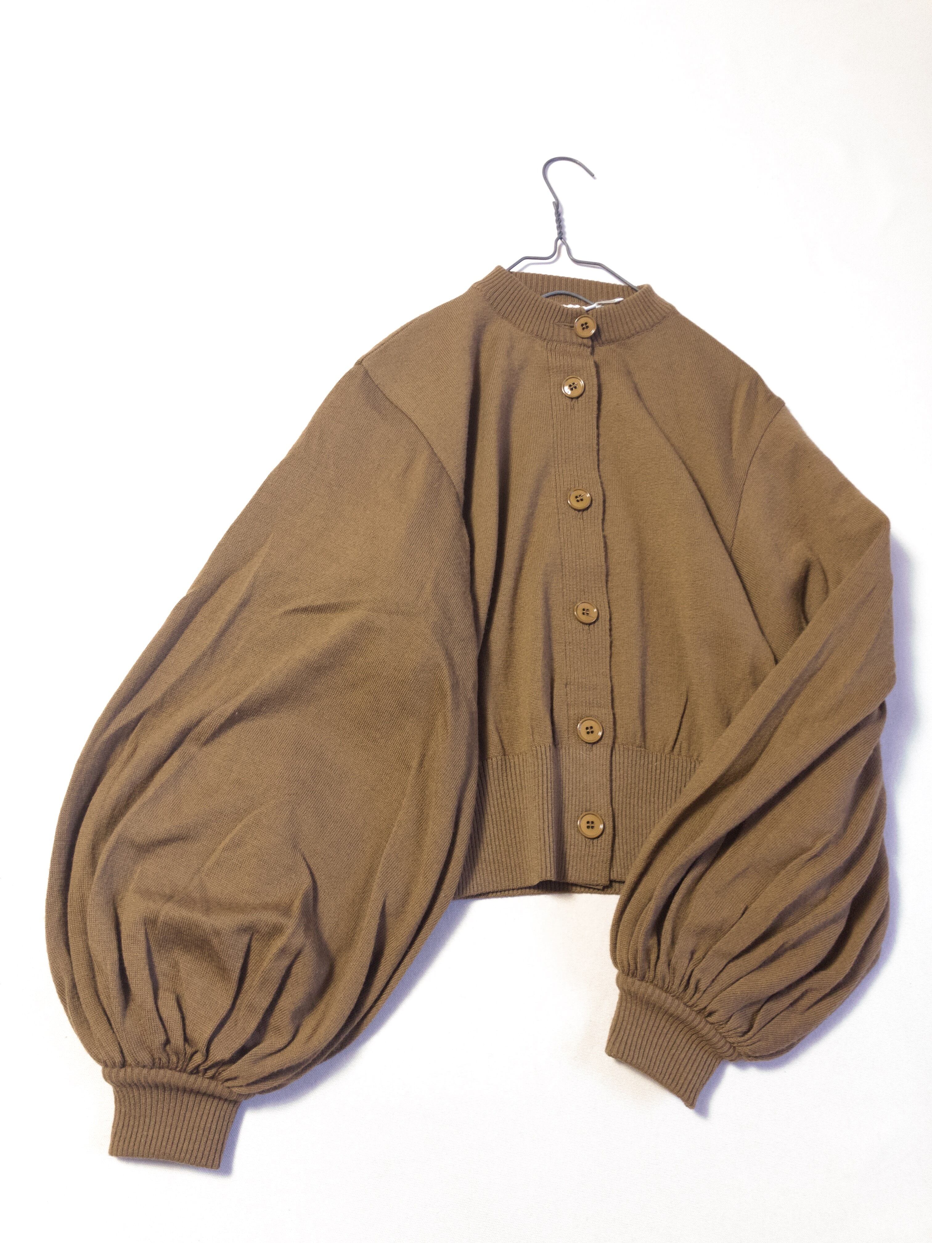 ボリューミーなバルーンスリーブが特徴的なモックネックのカーディガン