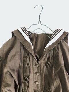 ◆ブラウンカーキのシックなセーラーカラーマキシ丈ワンピース