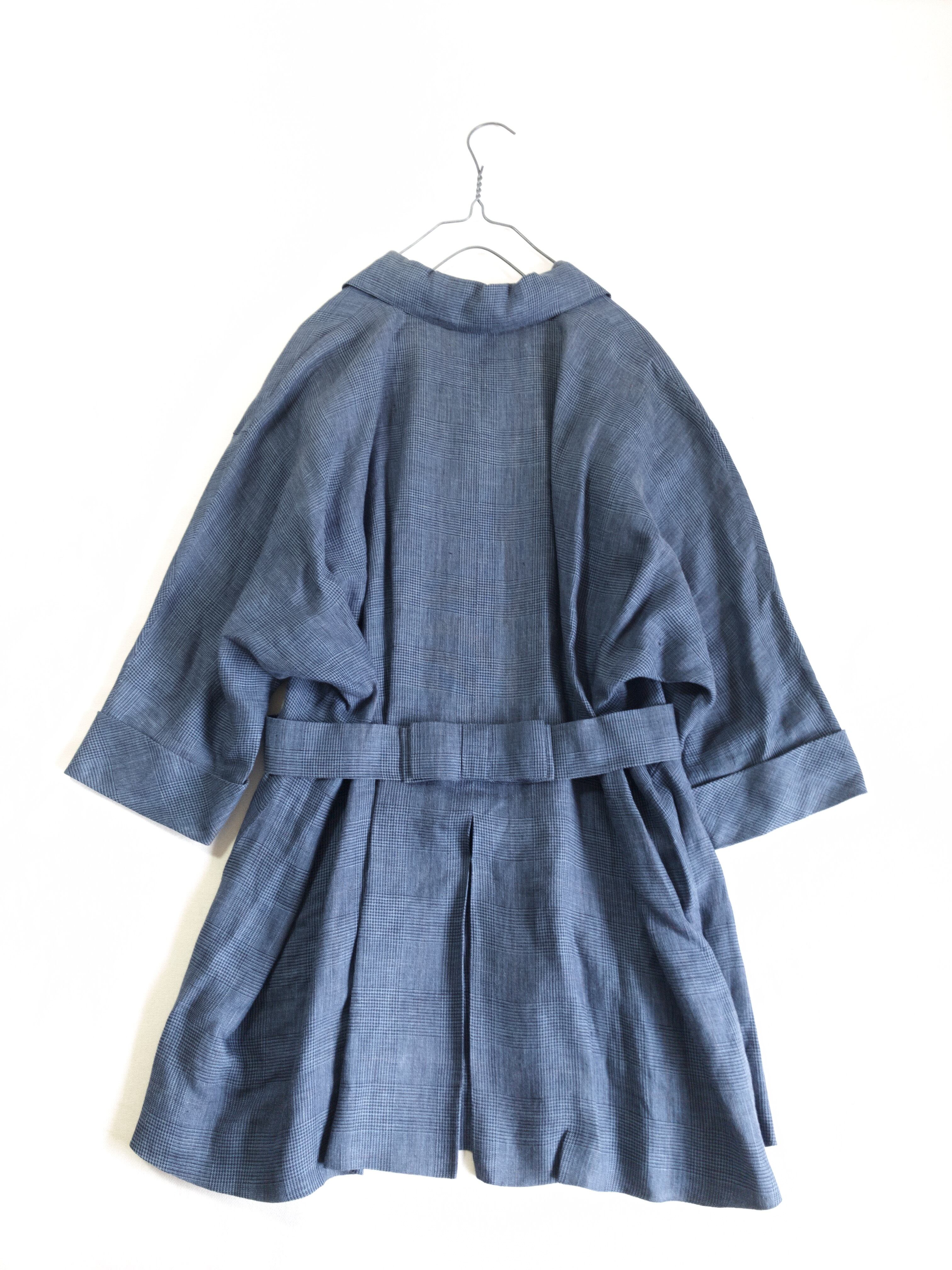背面のベルトにはリボン装飾やフレア裾などディテールで構築的でエレガントな仕上がり