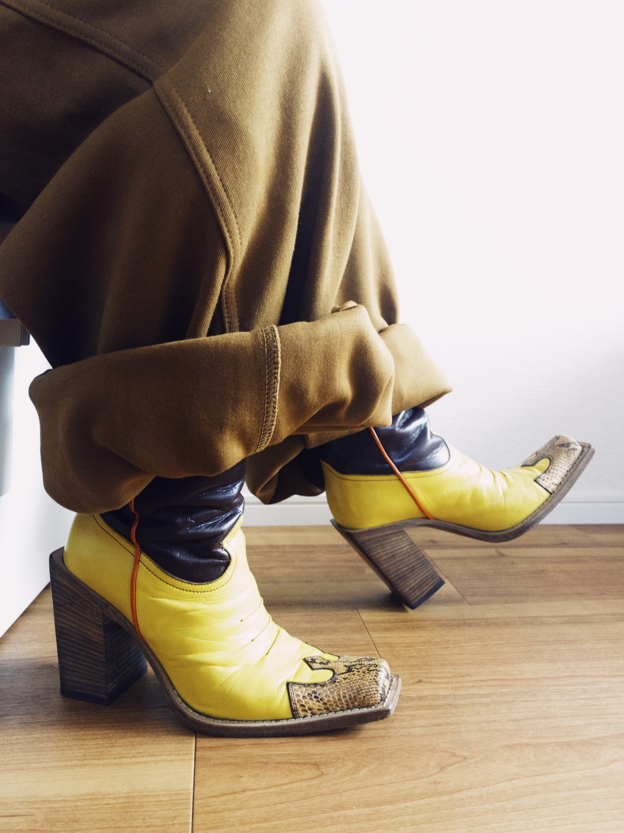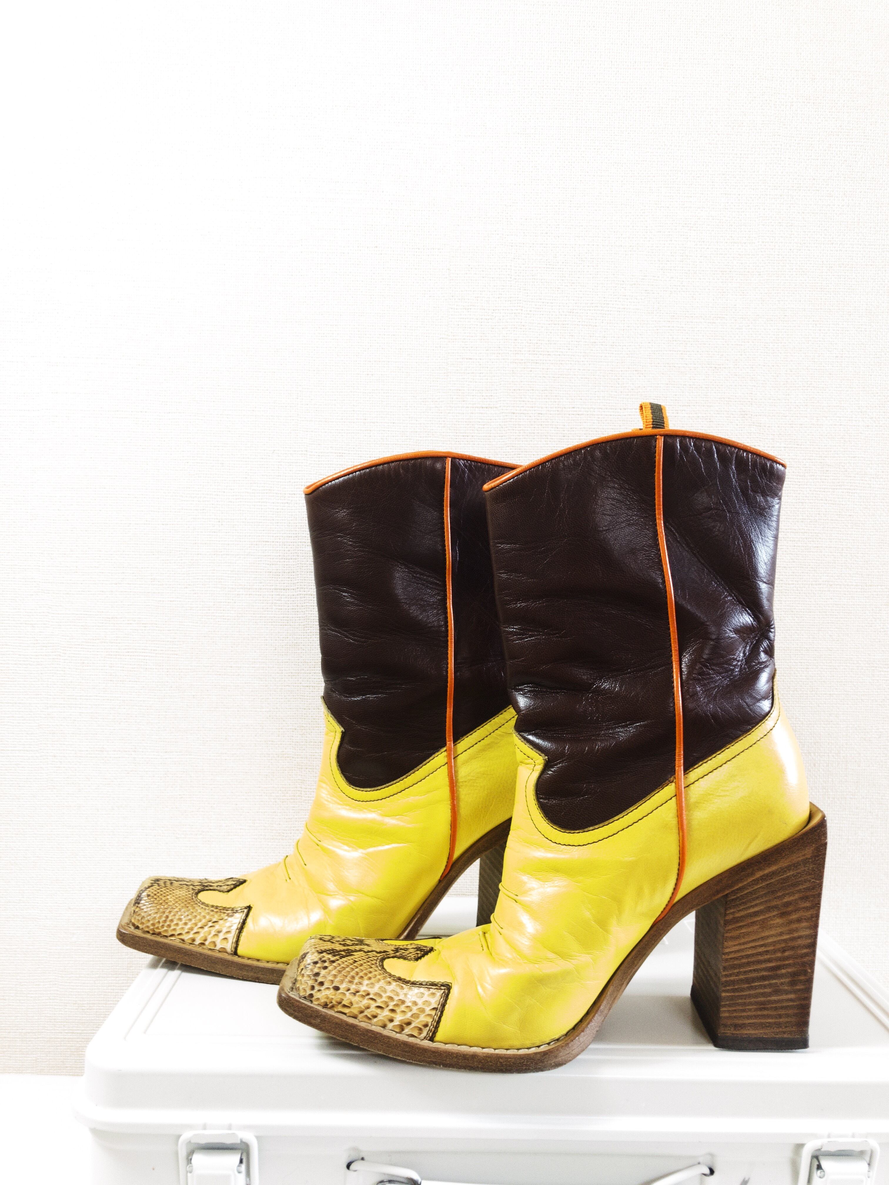 ◆レモンイエローとダークブラウンのスウィッチングウエスタンブーツ!