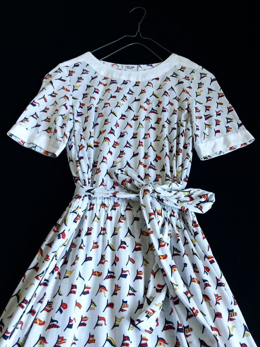 ◆白地にカラフルなフラッグ柄が爽やかなオールドセリーヌのワンピース