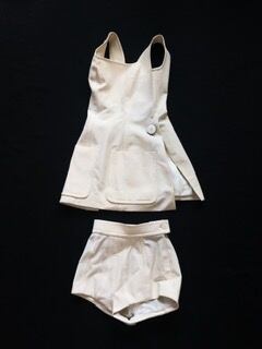 ボトムスはコンパクトなホットパンツ、上下共にレトロな雰囲気です!