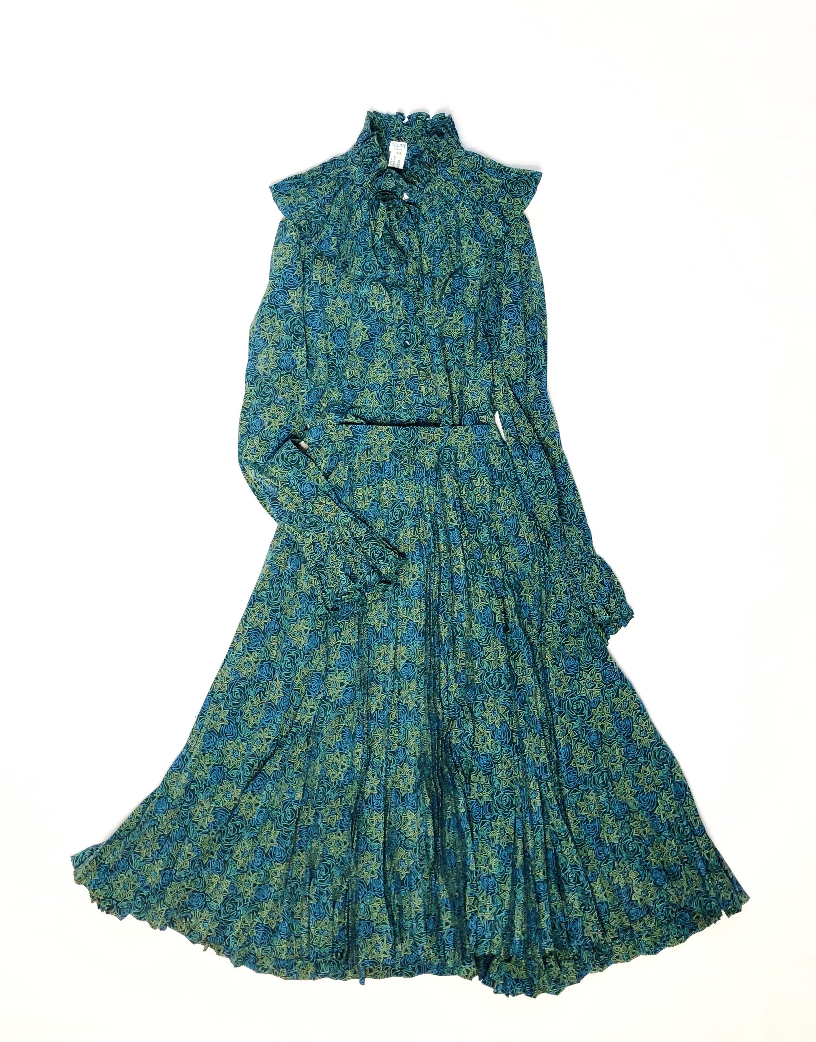 全面プリーツを施したスカートとの調和の取れたマッチング