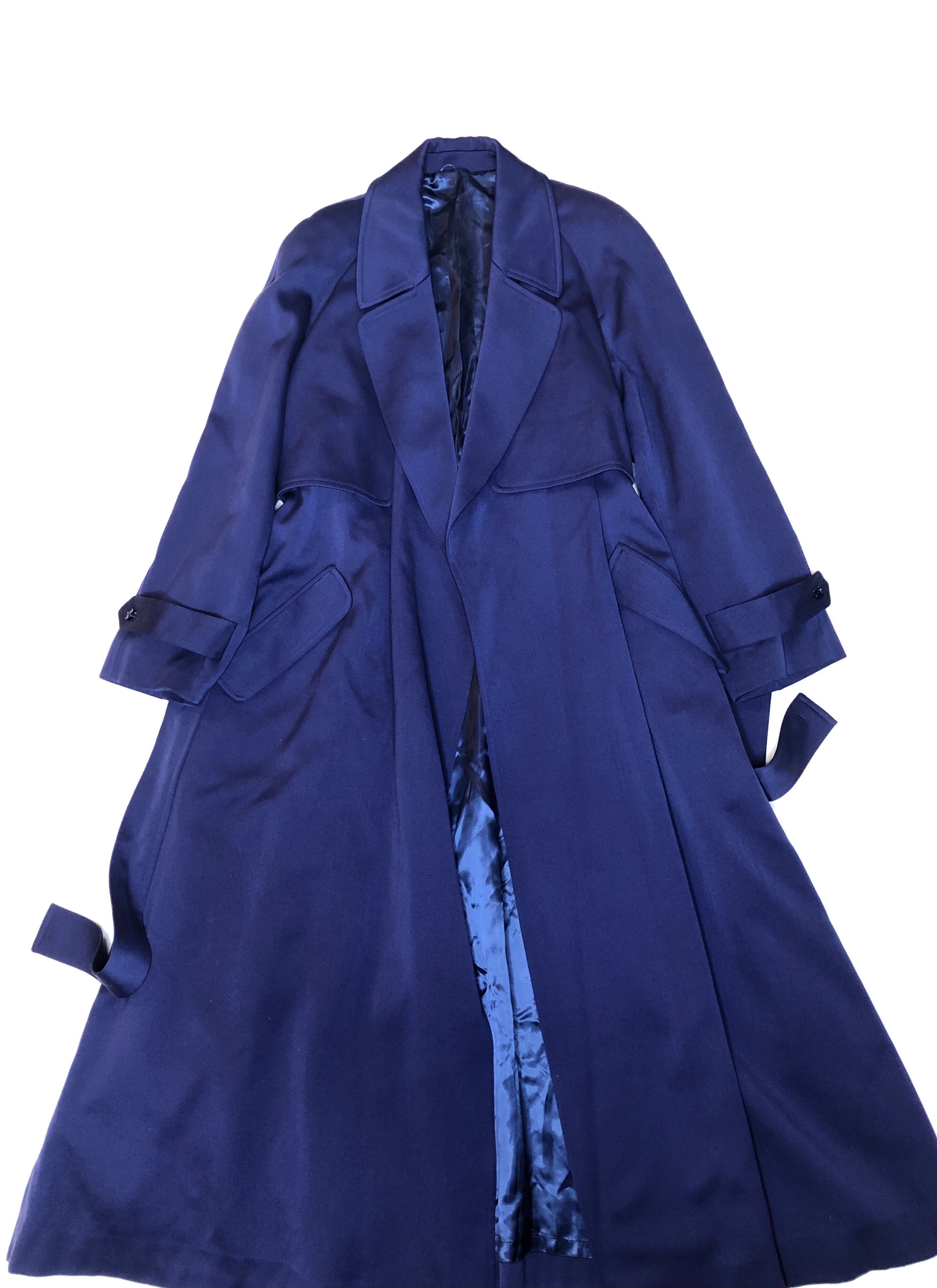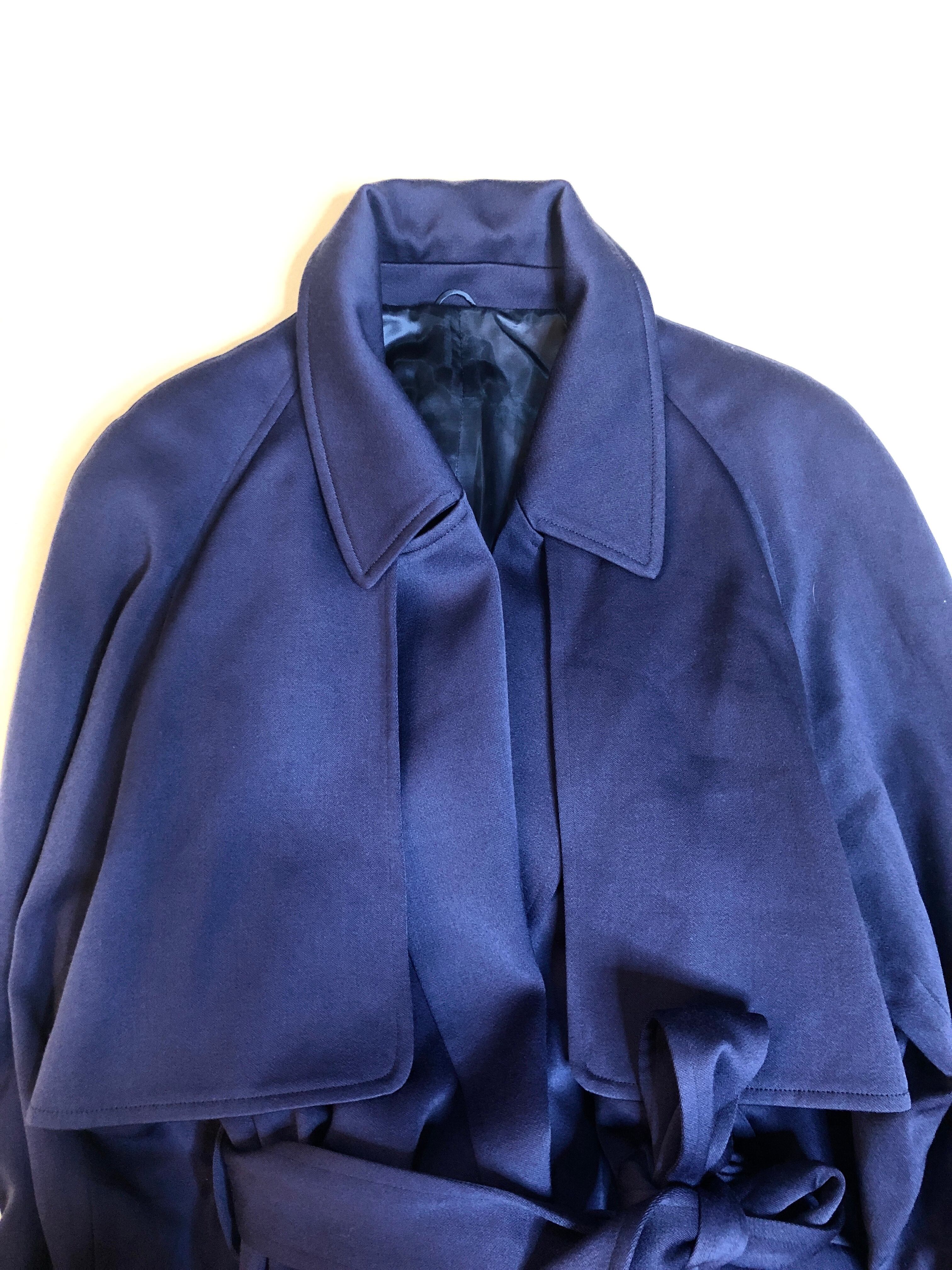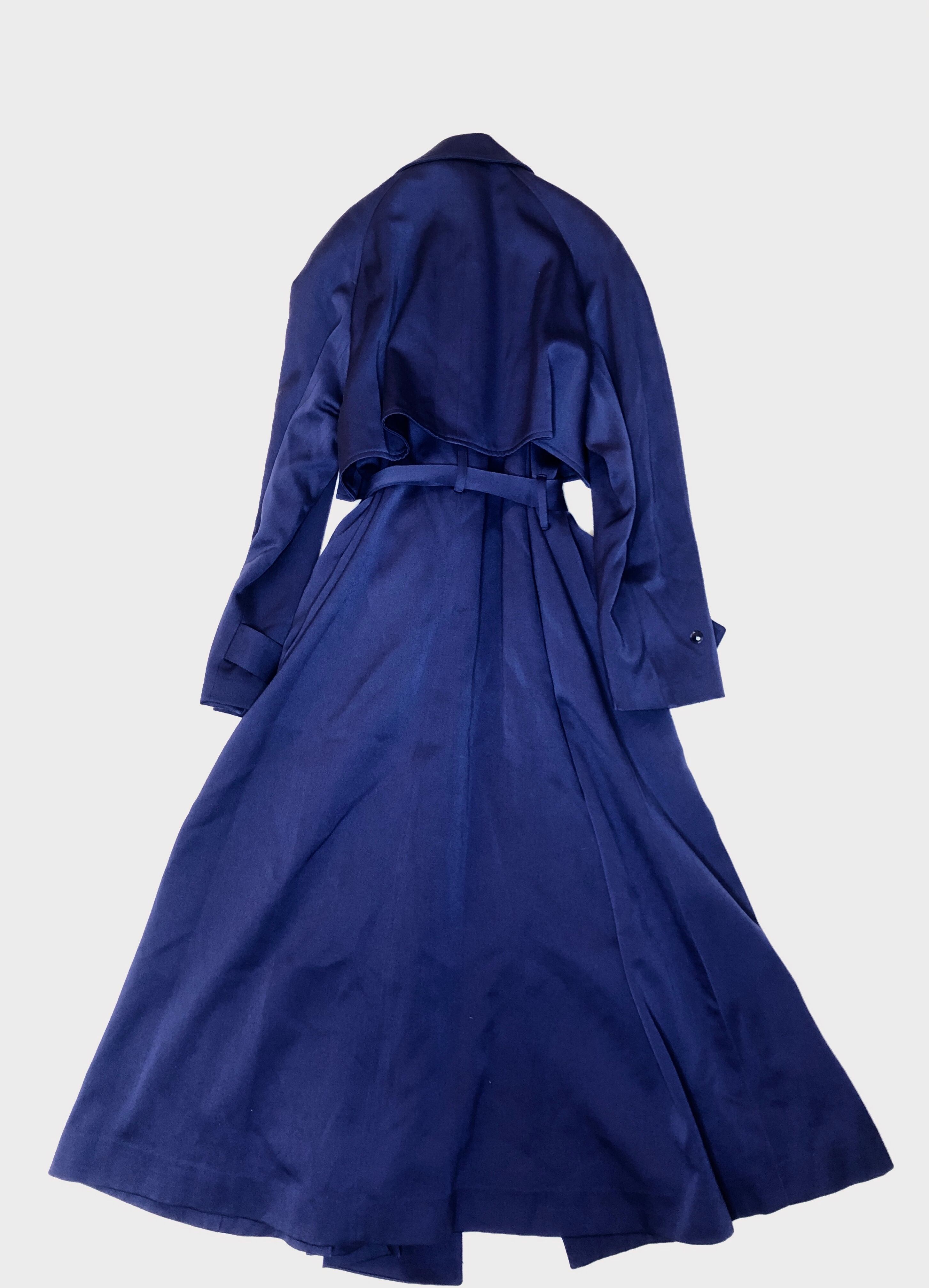 テロッとしたジャージー風の素材に明るいネイビーカラーが爽やかなトレンチコート
