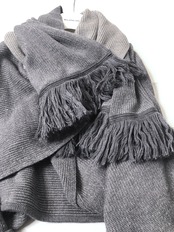 片方の脇下からフリンジの先までのストールの長さ130cm)