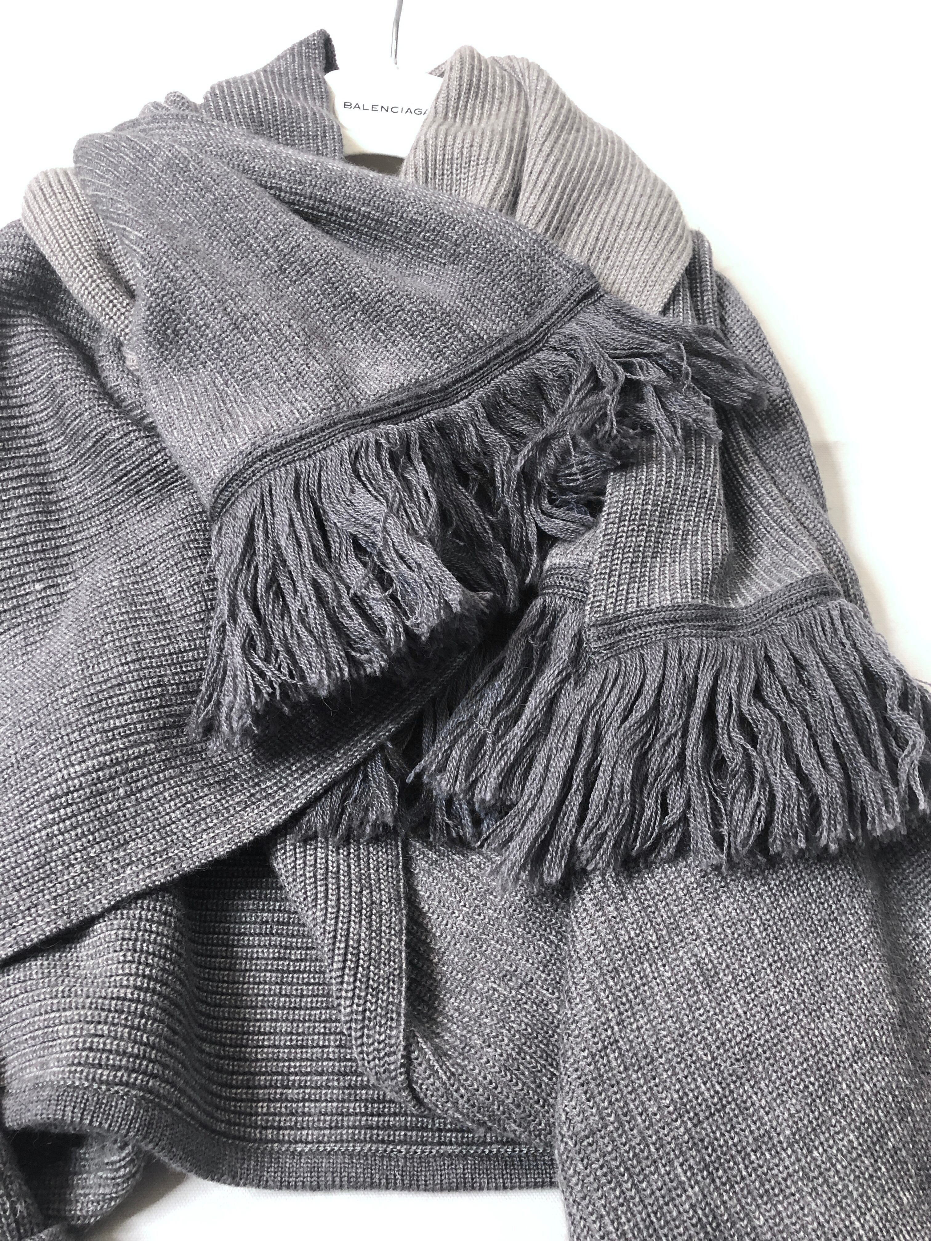 ◆大振りのストールとボレロが一体化したバレンシアガのデザインニットです。