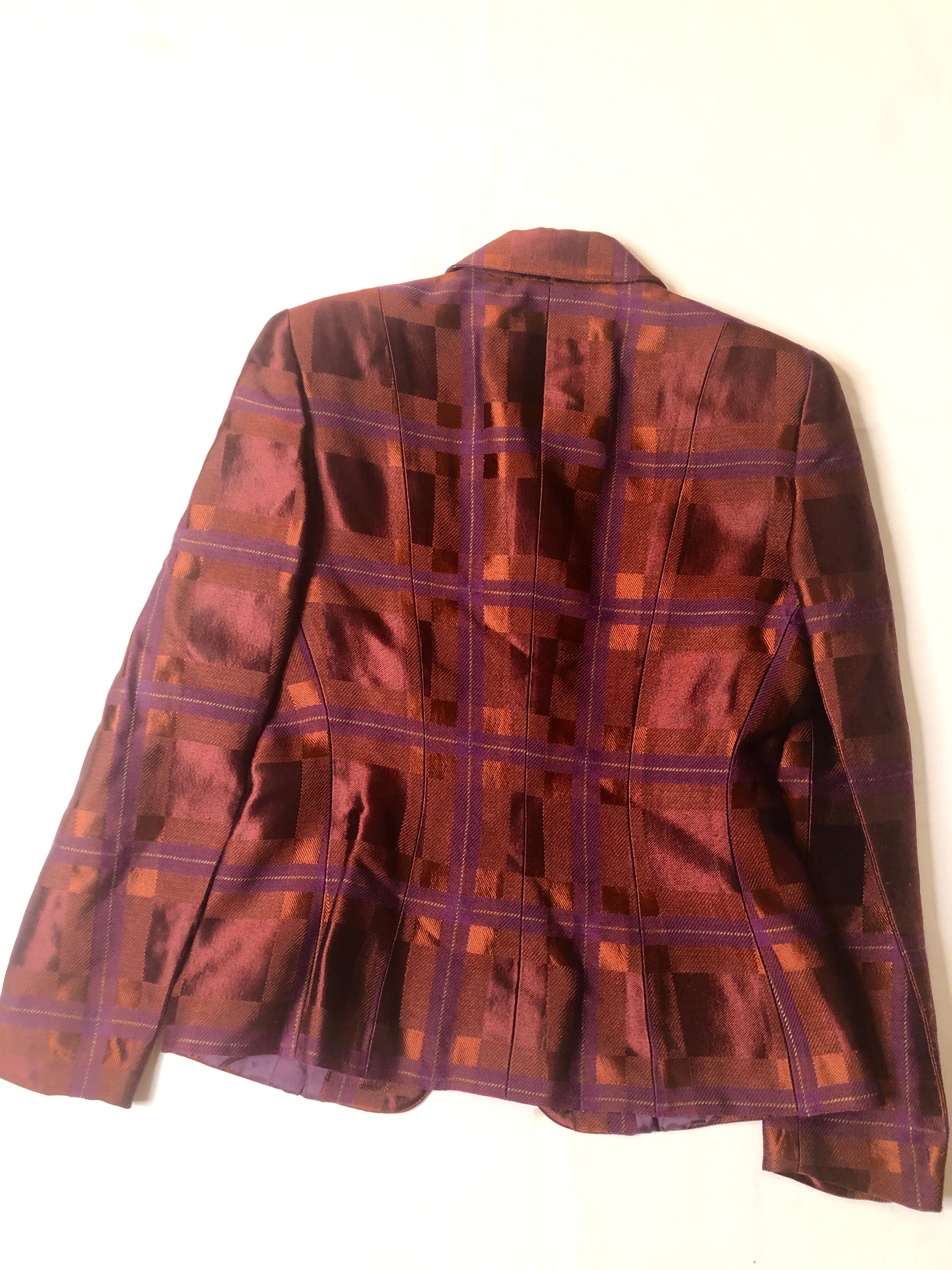 煉瓦色と赤紫のグラデーションチェックがとても魅力的なテーラードジャケット!