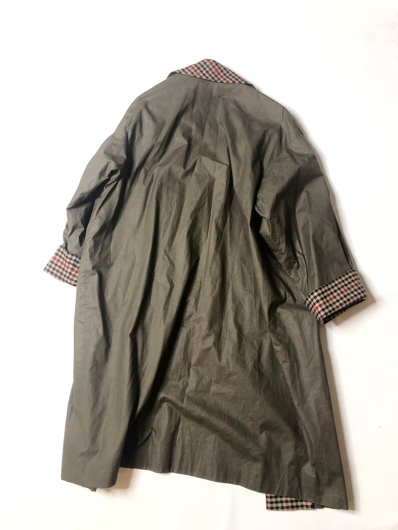 トレンチコートのようなごわつきはなくコーティングを施した平織コットンを使用しており、軽くさらっと羽織っていただけます。