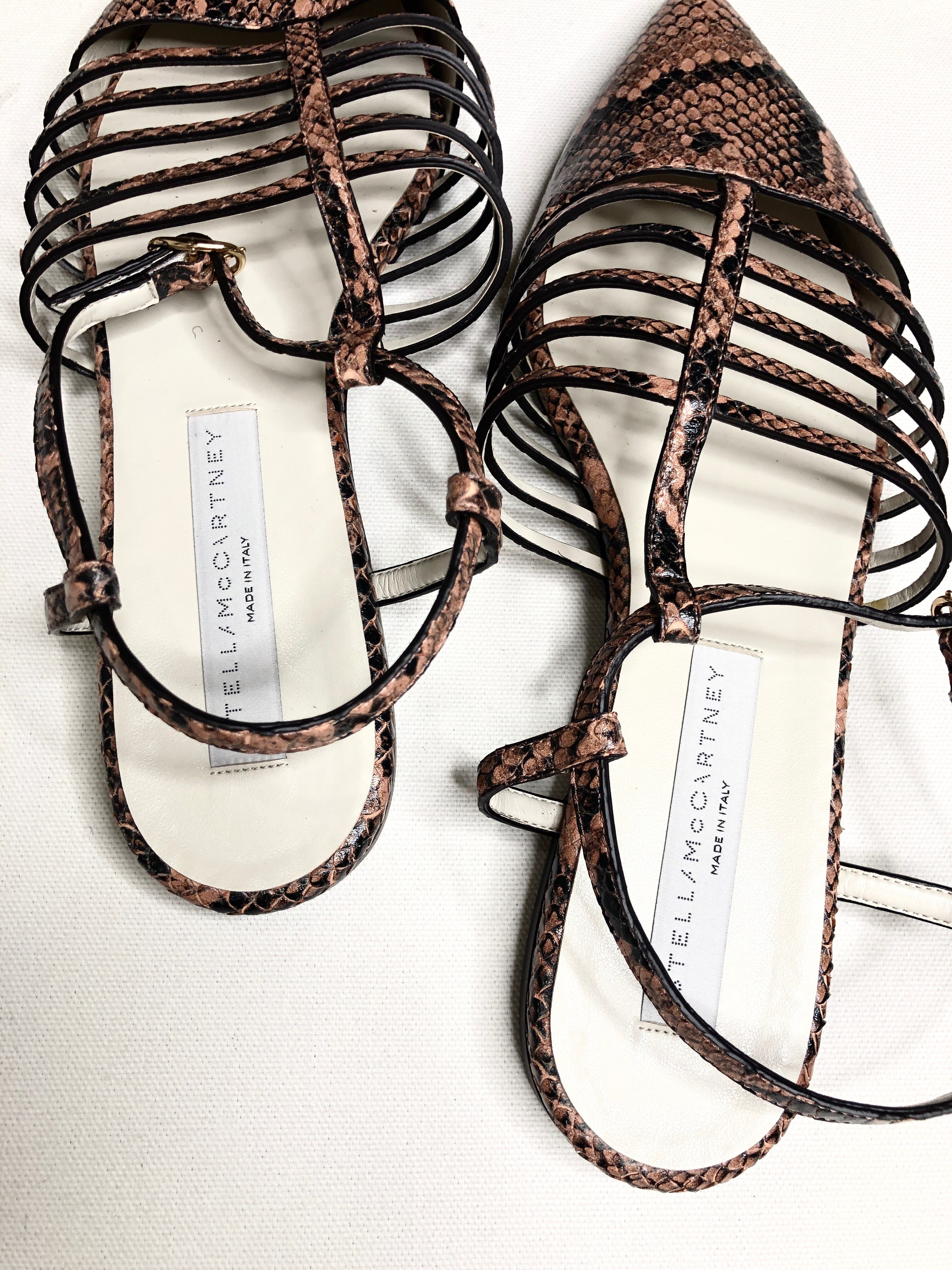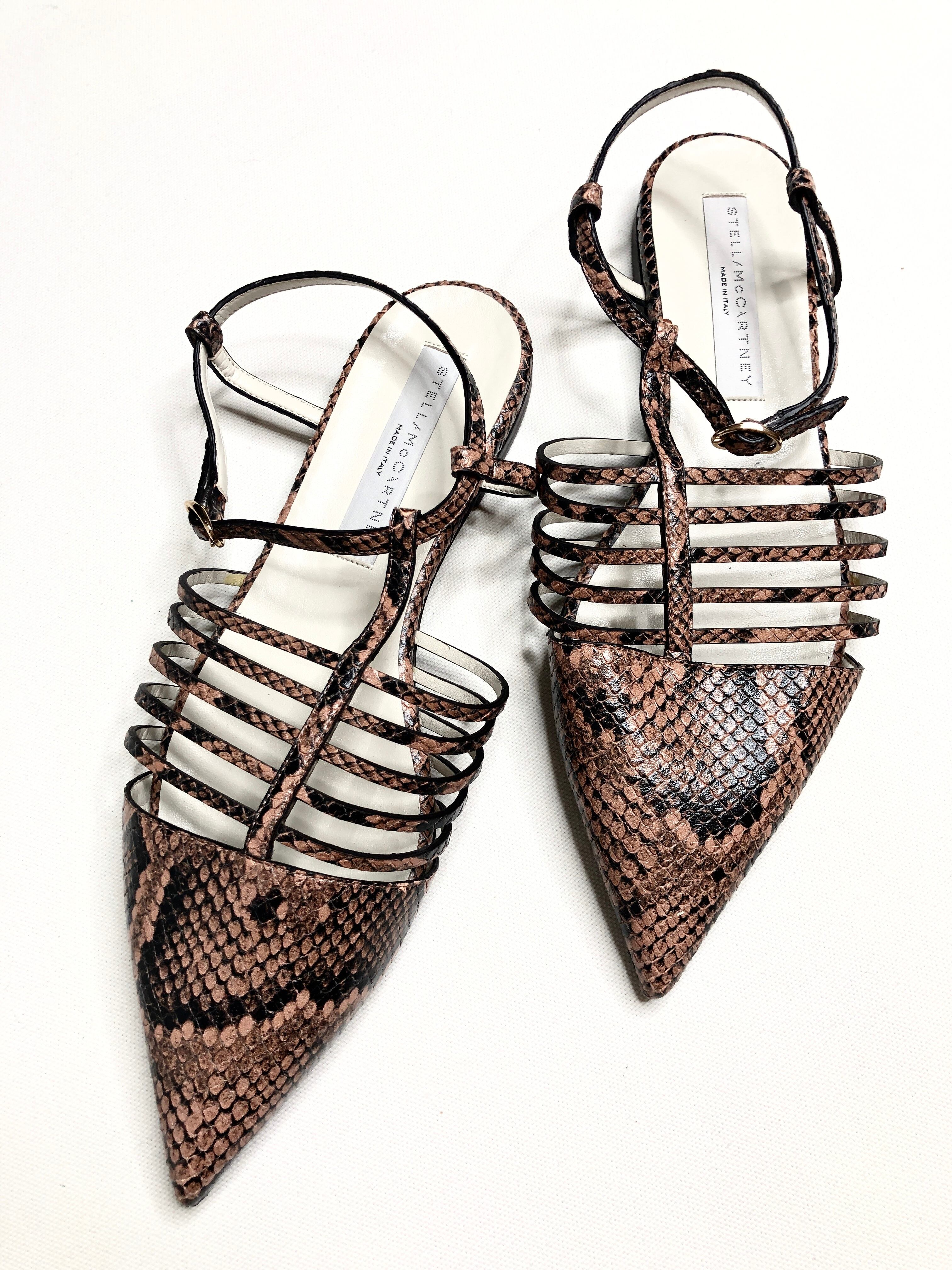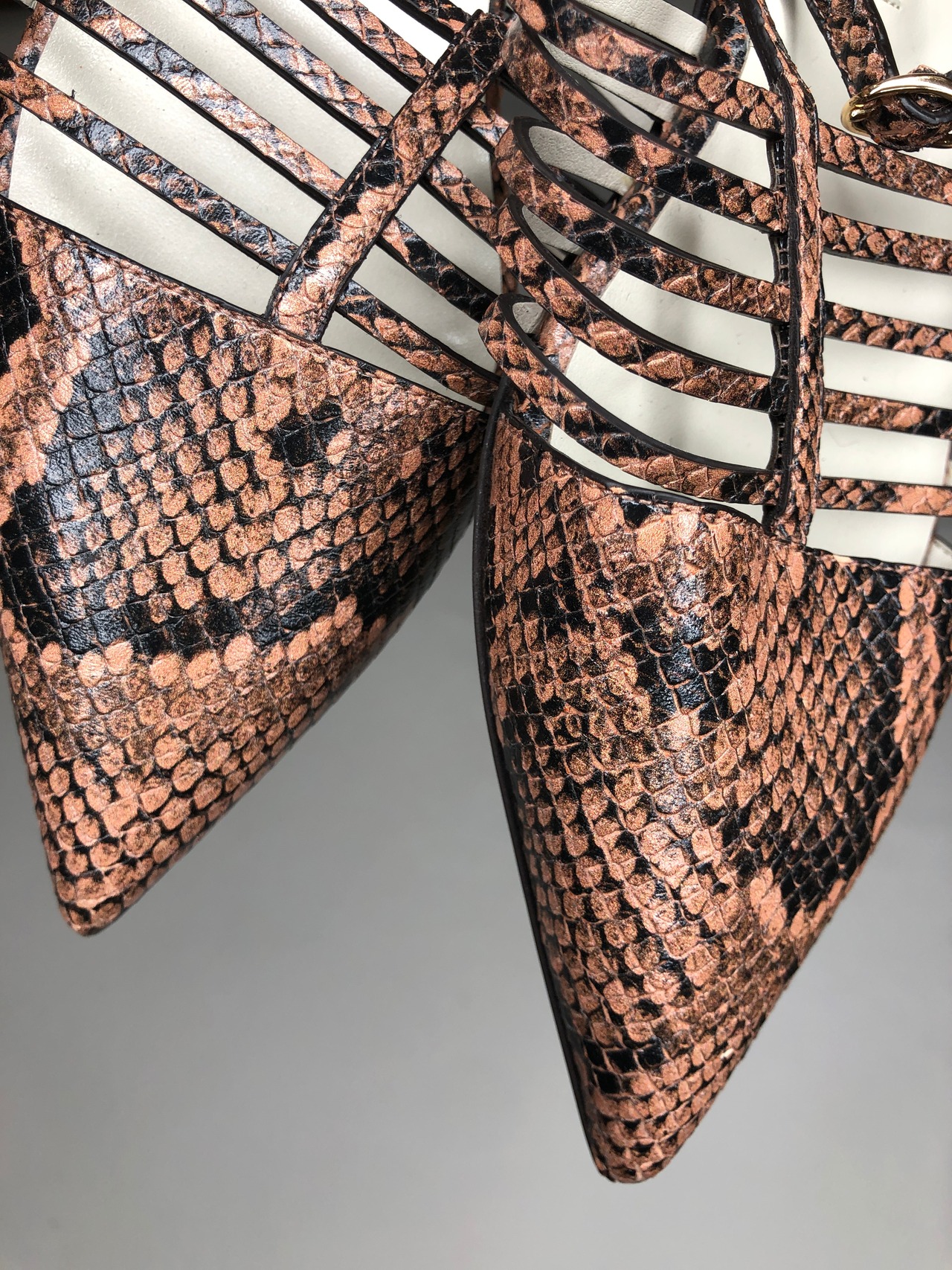 ◆パイソン型押しのフィッシュボーンサンダルです。
