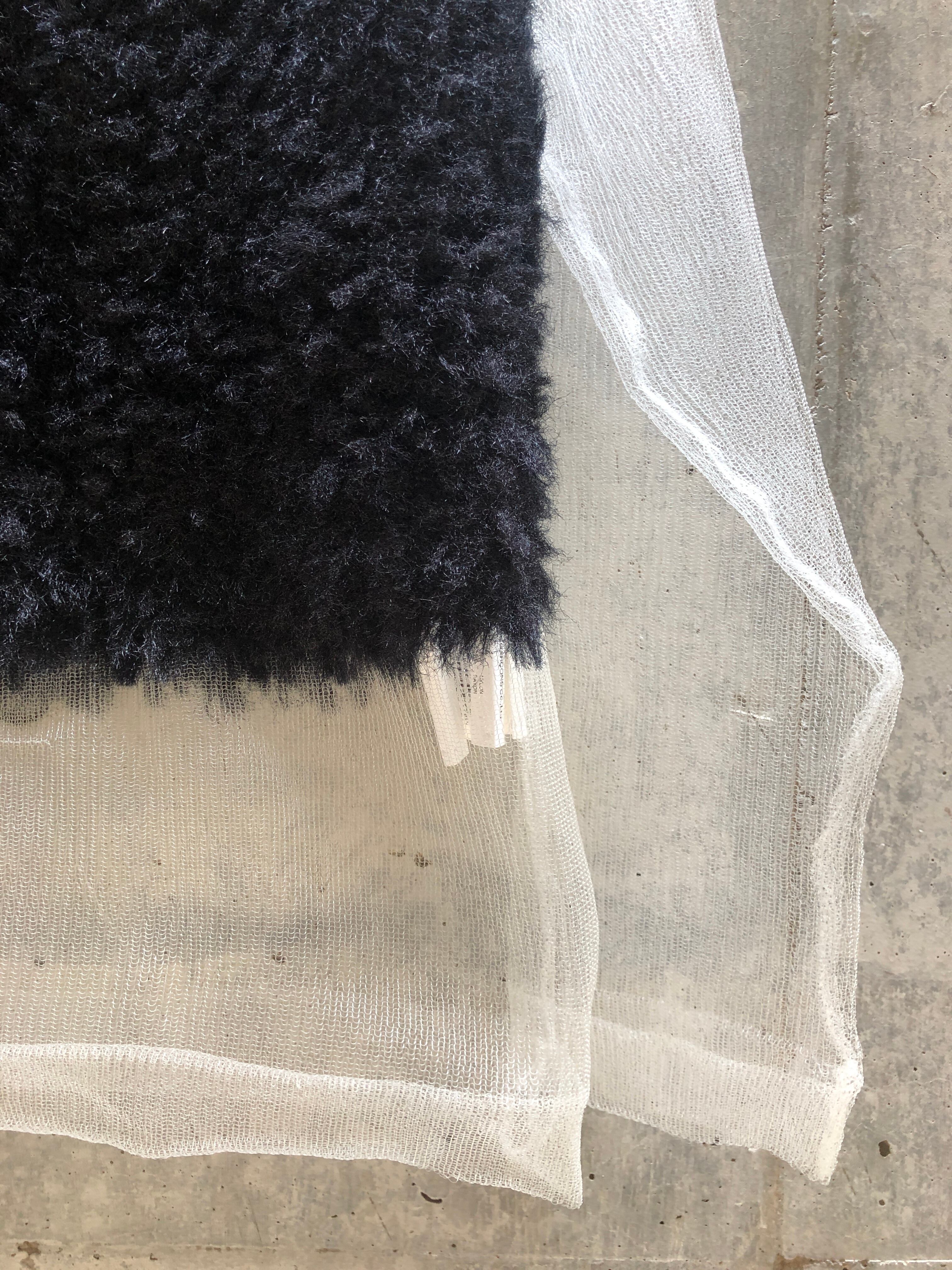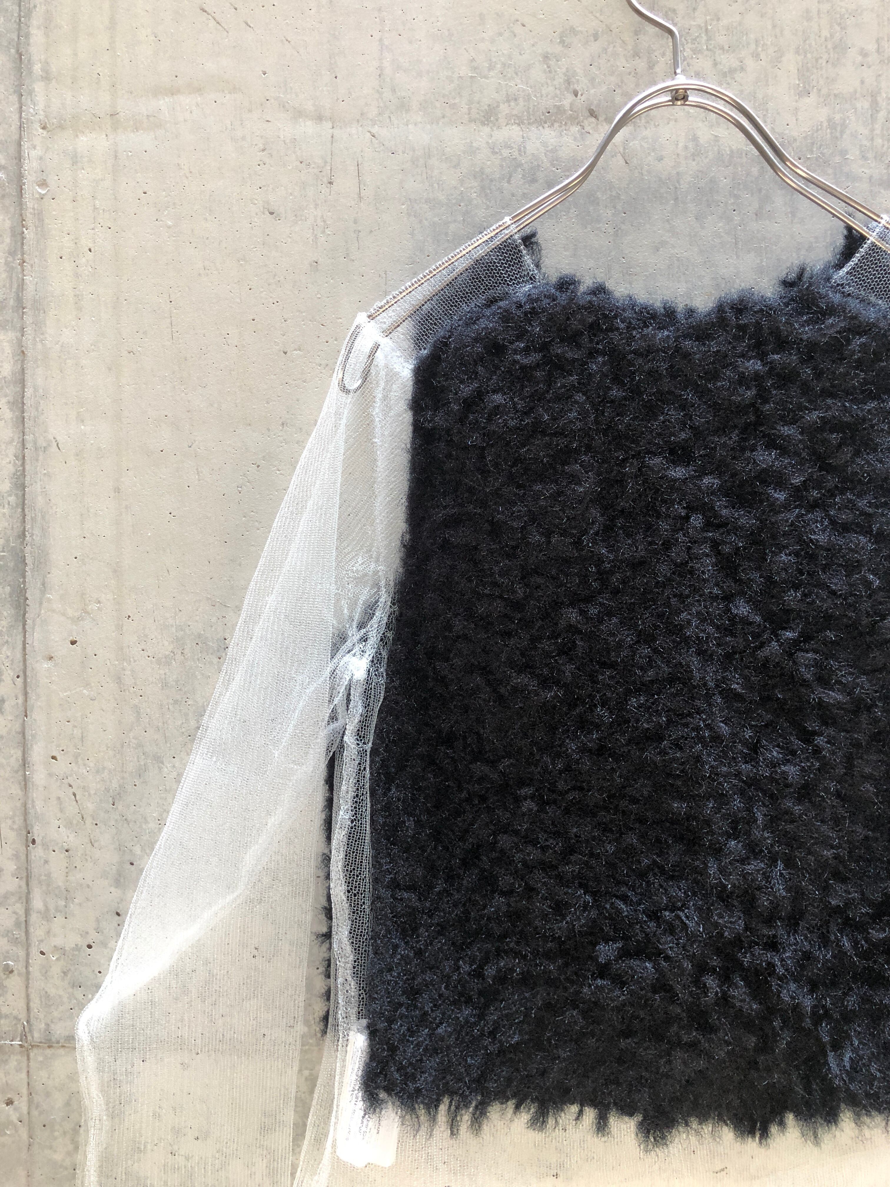 シースルーのチュールカットソーにシャギーニットを配した軽量感のあるプルオーバー
