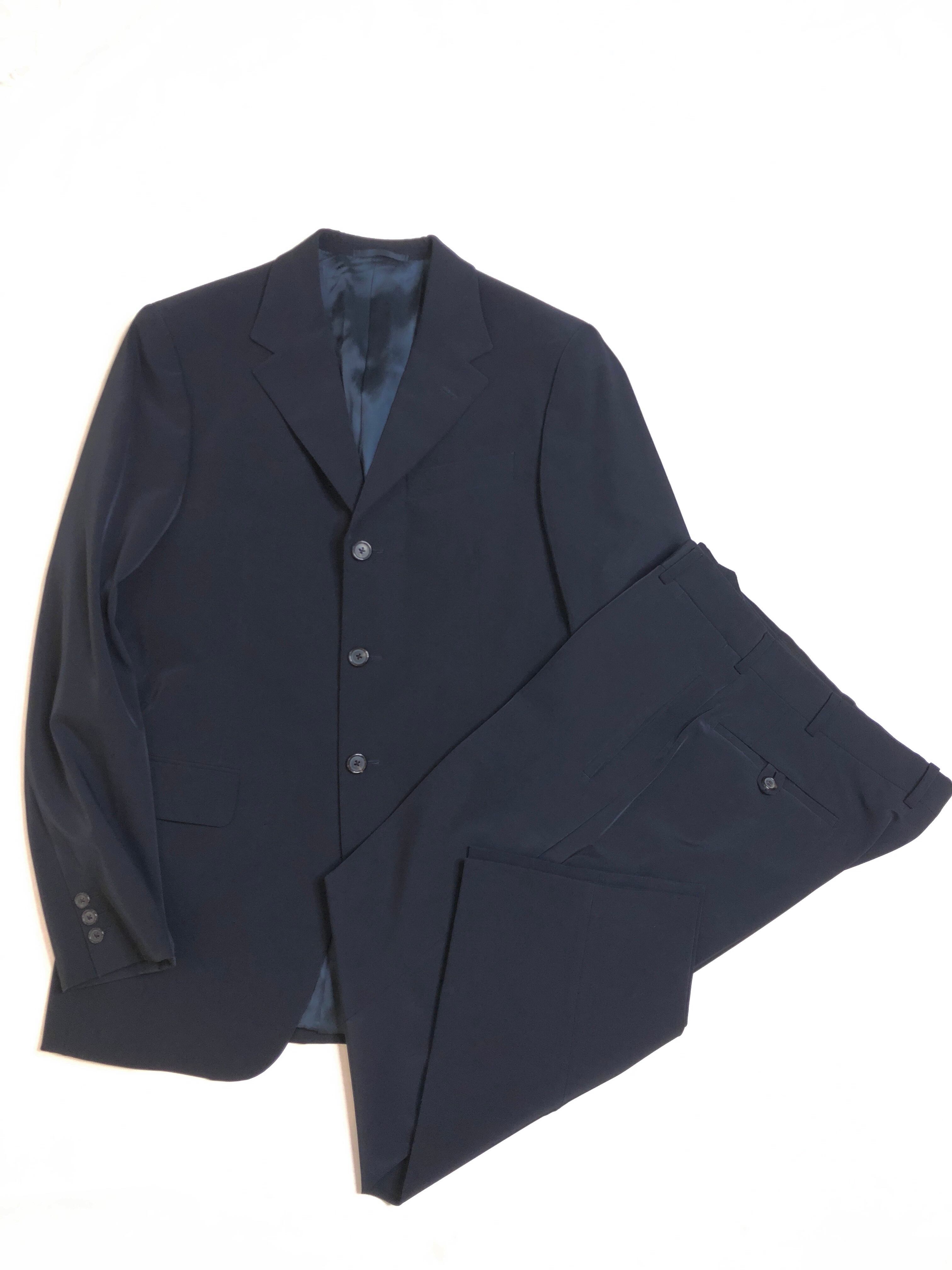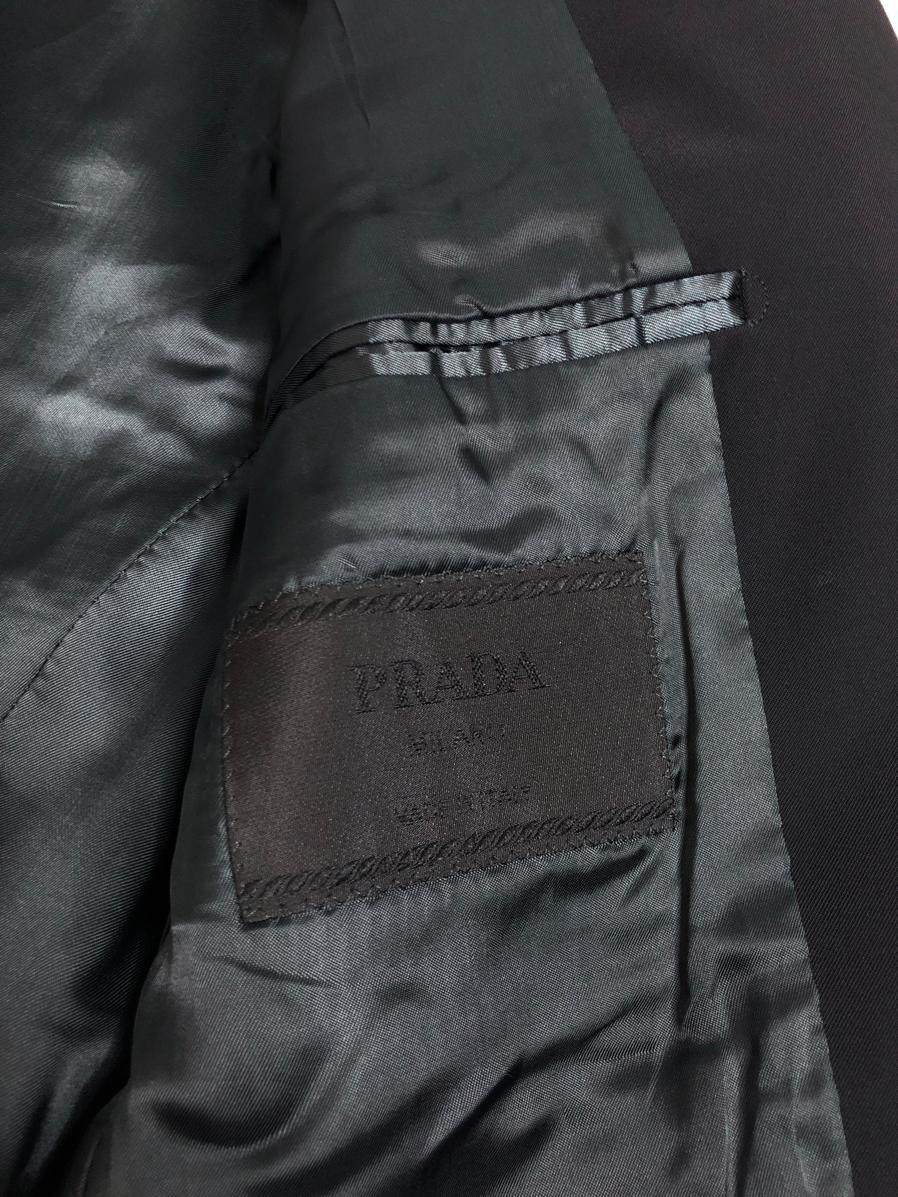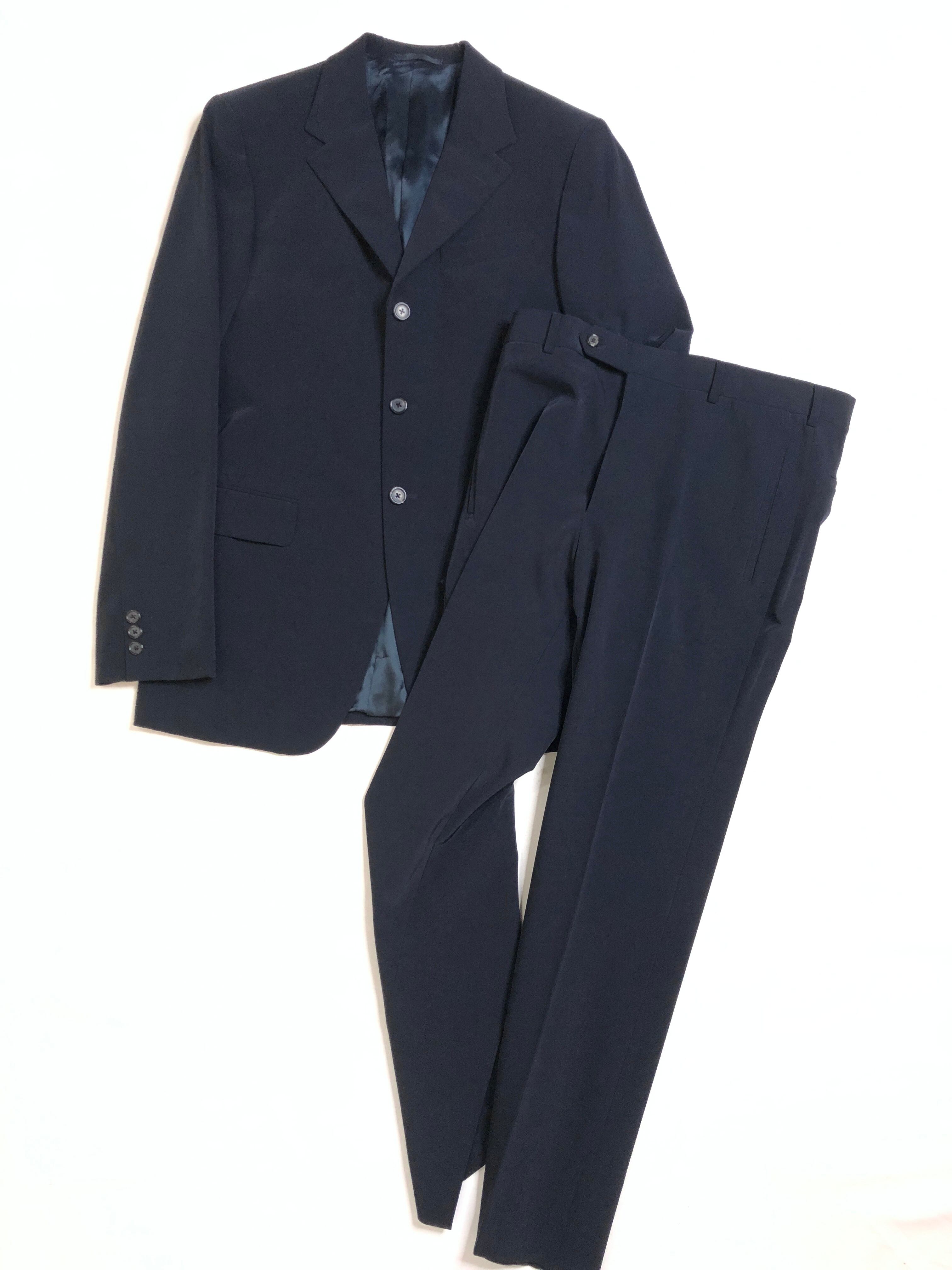 ◆シャリ感のあるストレッチ素材を使用したプラダのメンズスーツです。