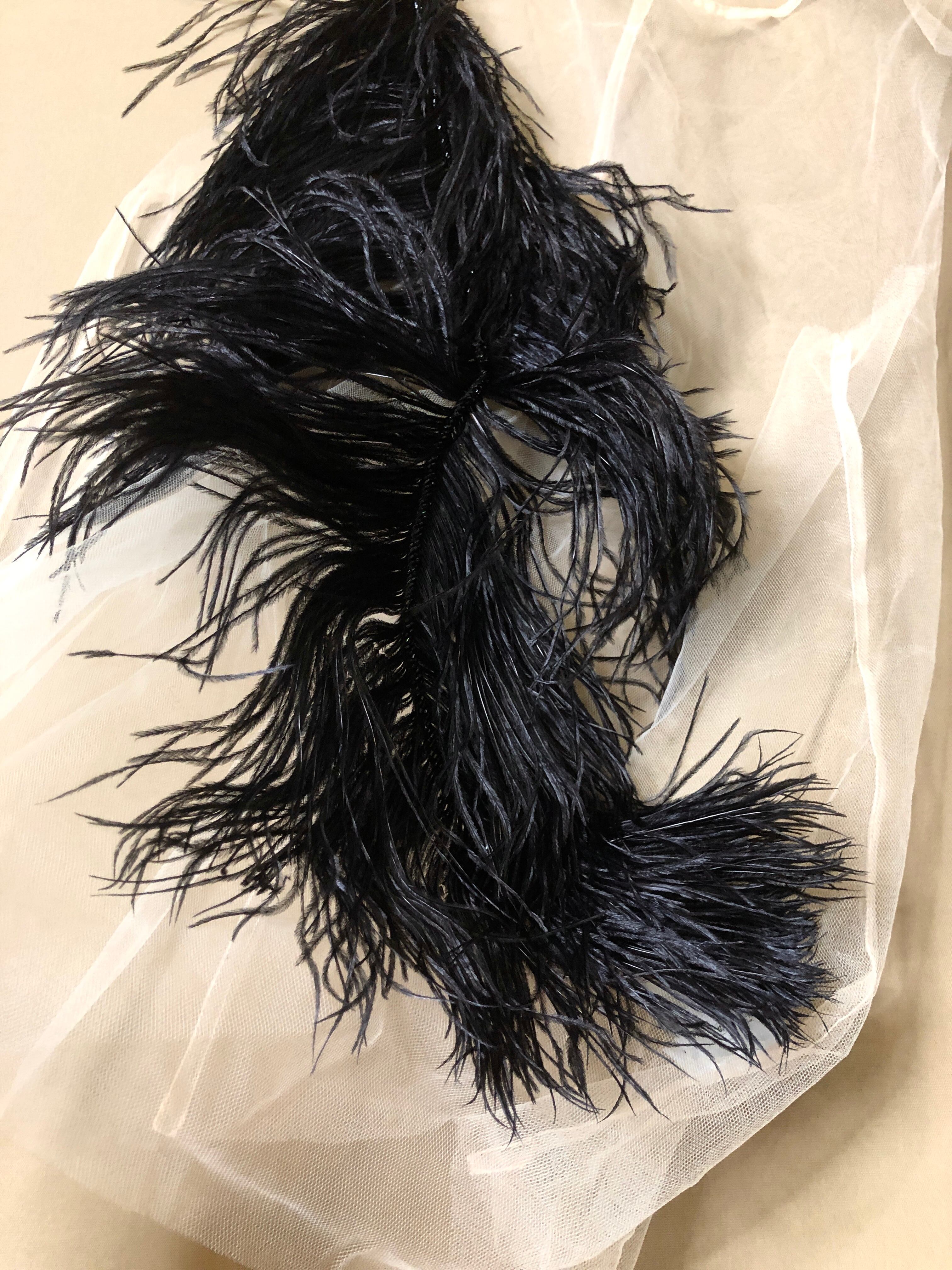 ◆チュール素材にフェザー装飾を施したカットオフトップス