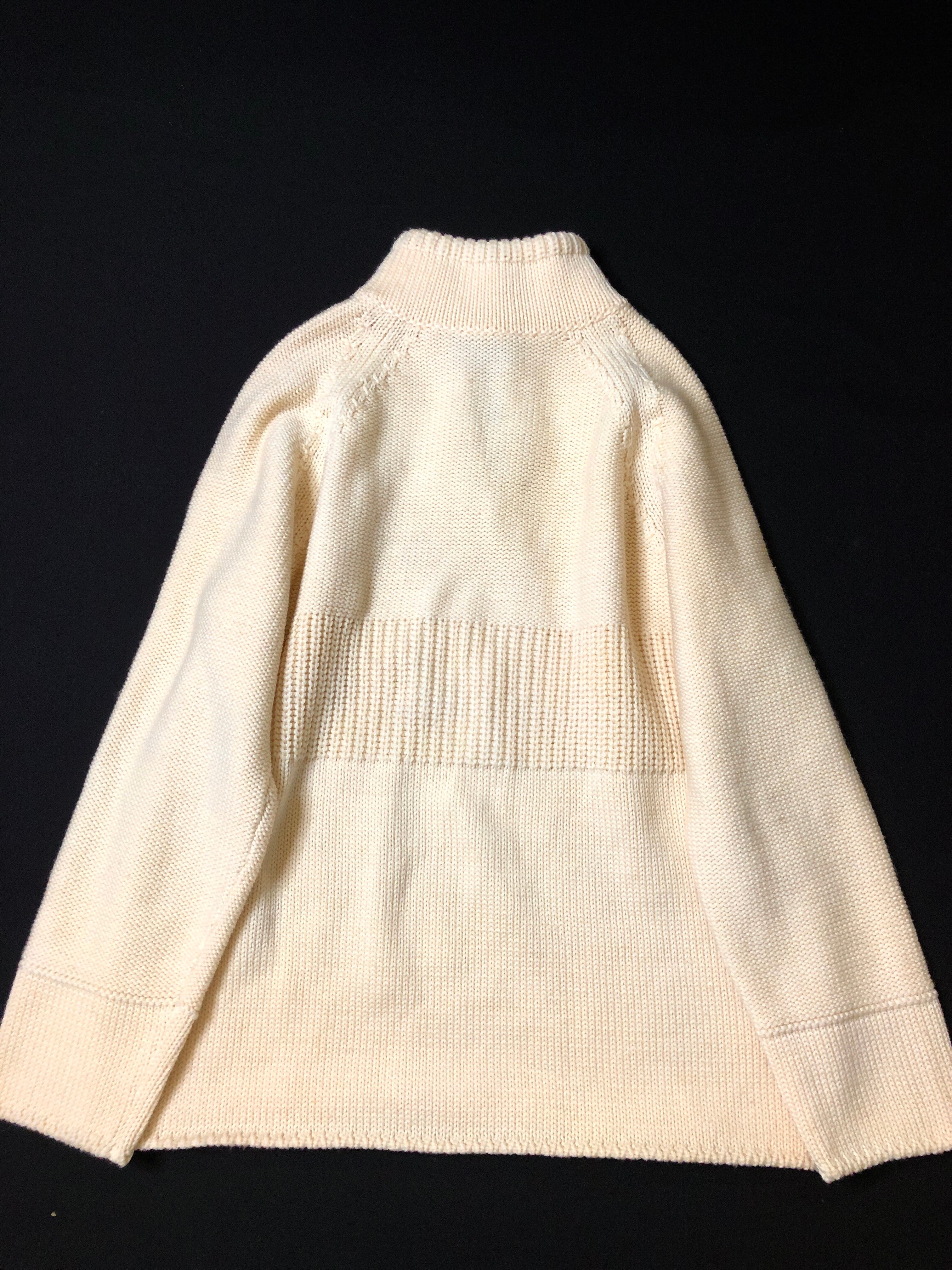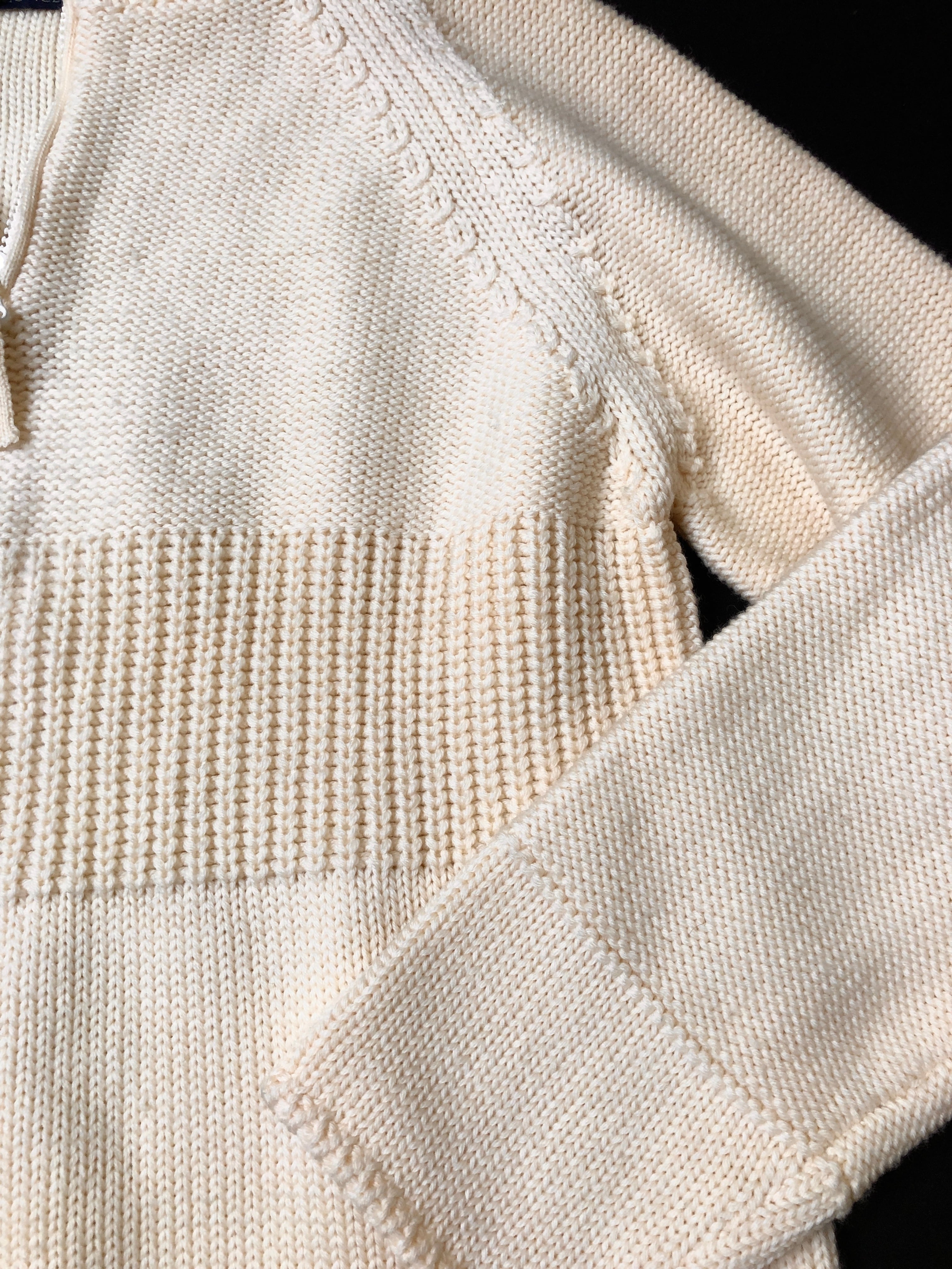 ざっくりと編み込まれた上質なバージンウール、ハイネックのハーフジップデザインです。