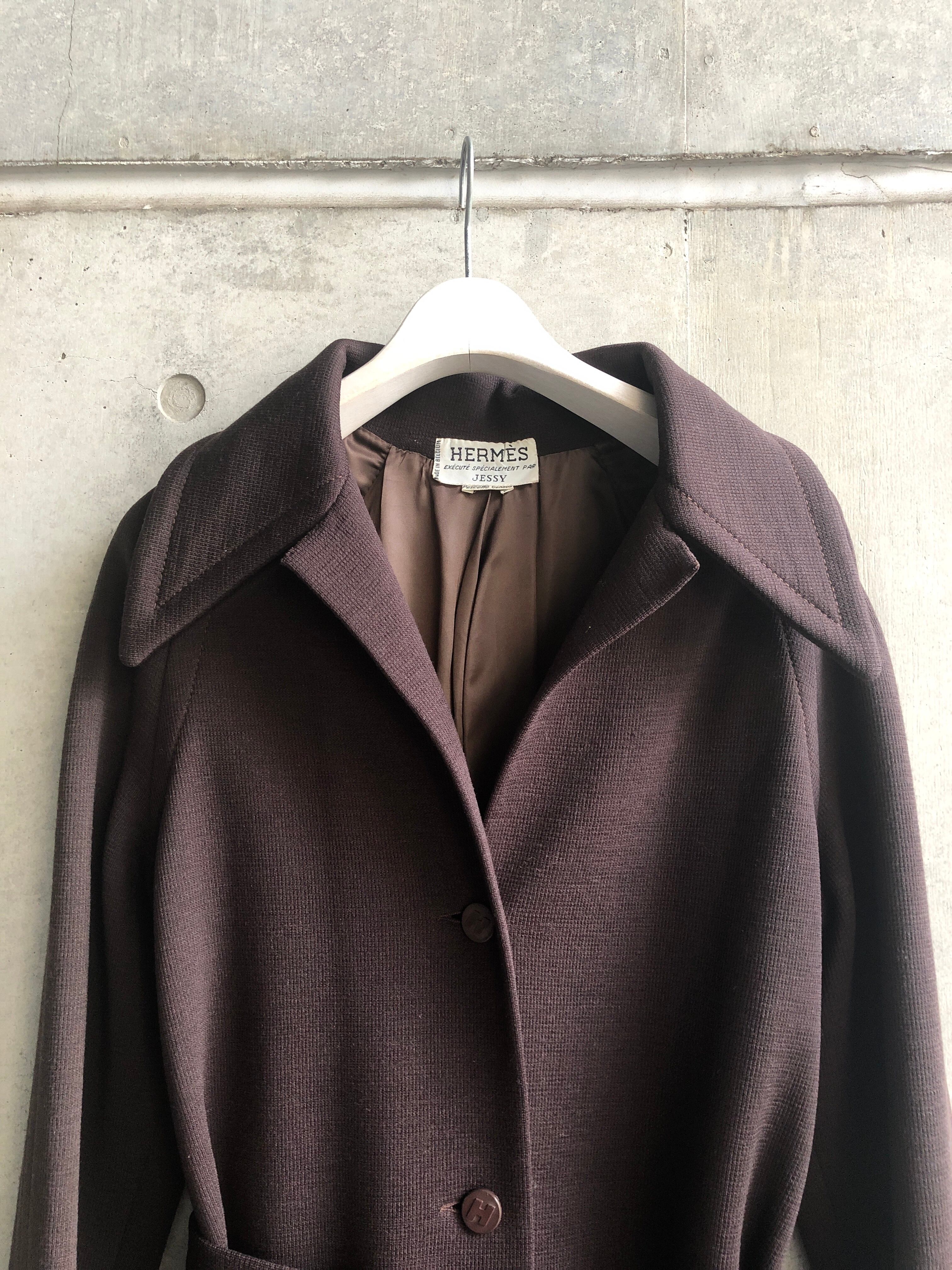 外に向かって弧を描く特徴的な衿やボディラインに沿った美しいシルエット、フロントのHボタンなど近年物には無いリュクスなレトロ感を味わえる逸品です。