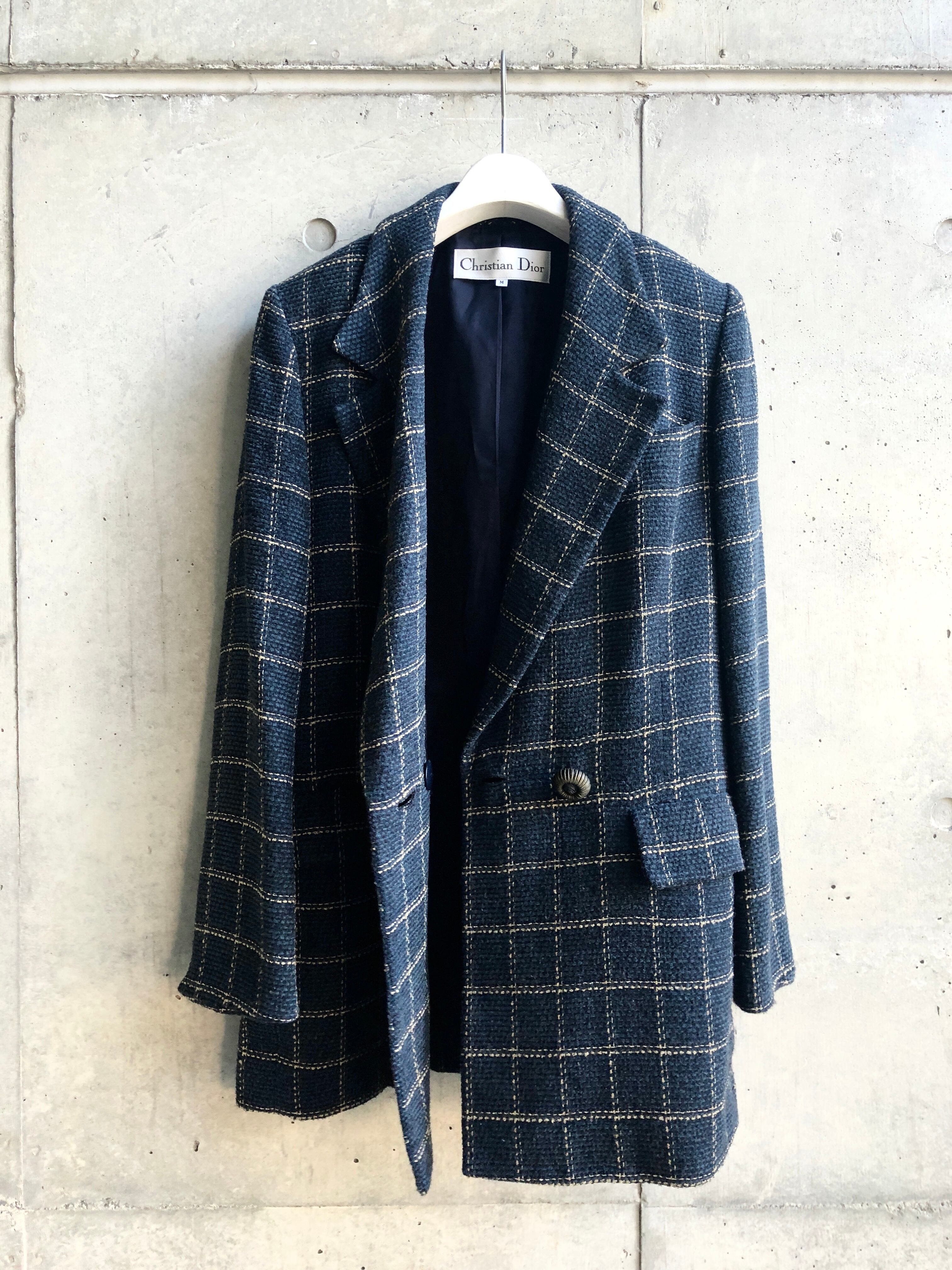 シックなディープブルーに格子状のチェックをあしらったテーラードジャケットです。