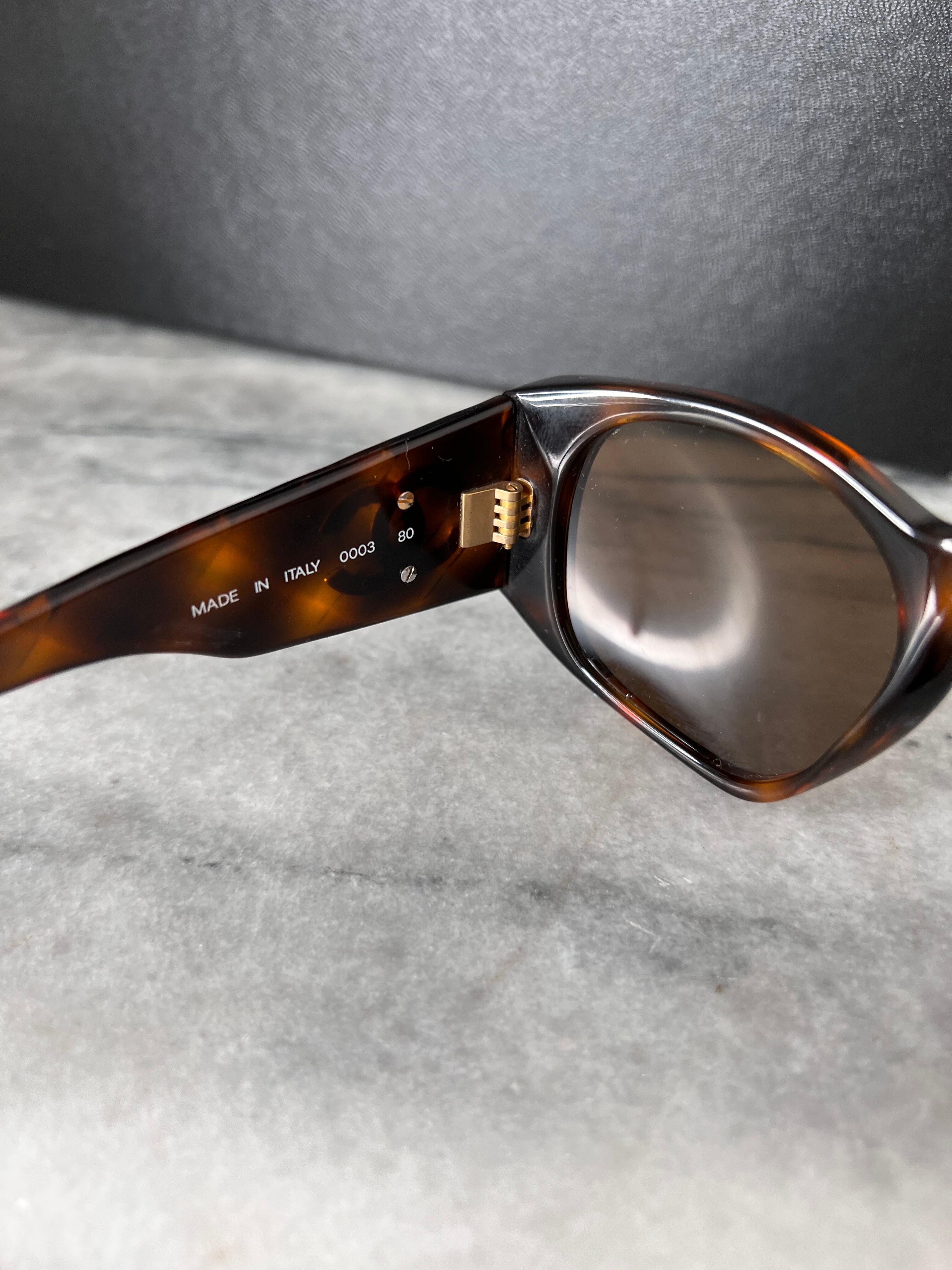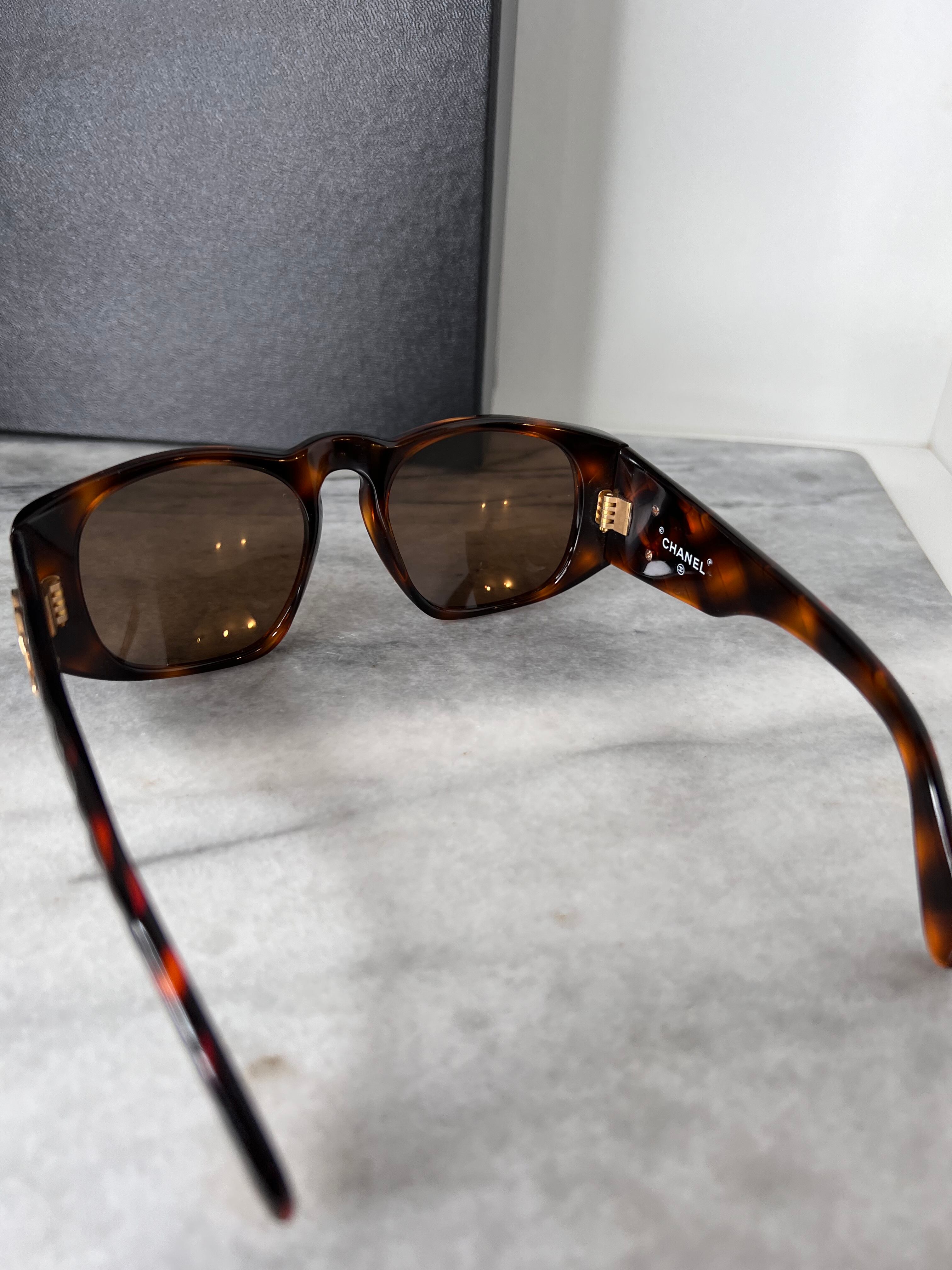 ゴールドのココマークにマトラッセを象ったテンプル!レトロなシャネルらしいデザインのサングラスです。