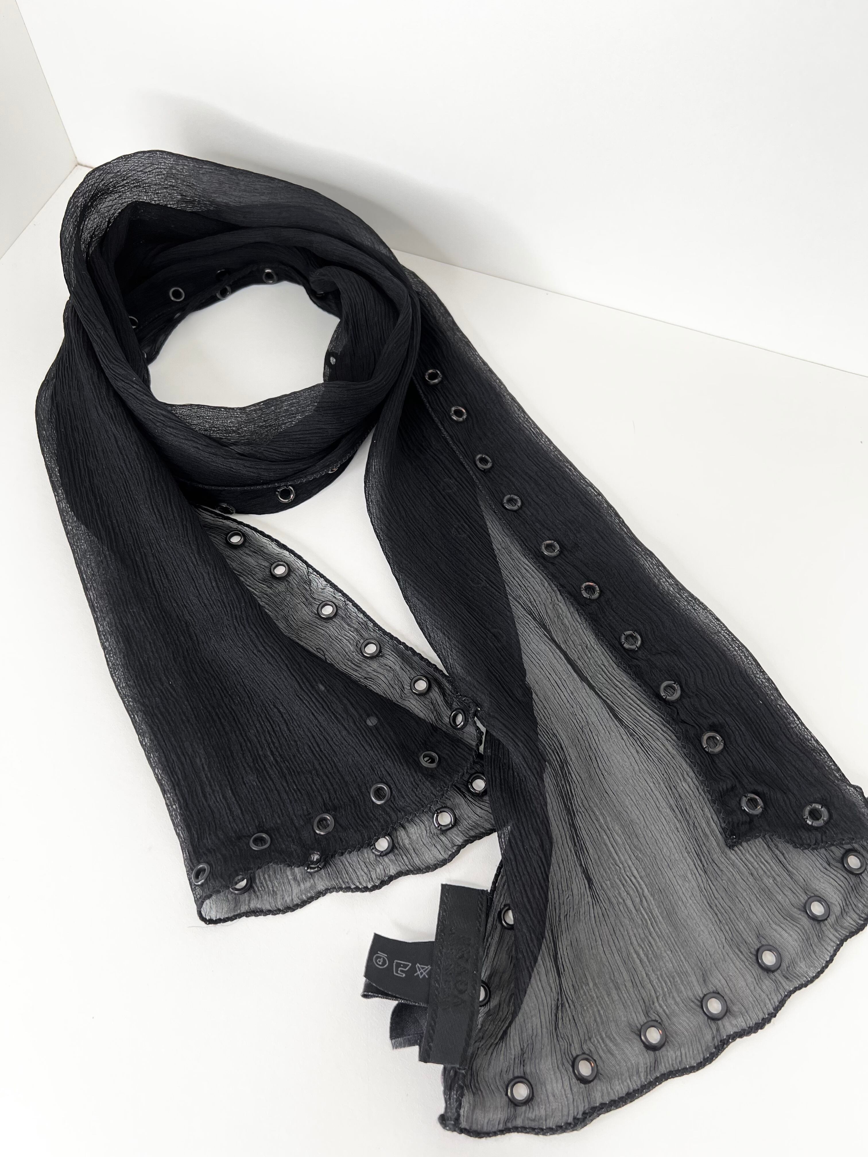 縁取りにハトメリングをあしらい繊細さにエッジを効かせた一品。