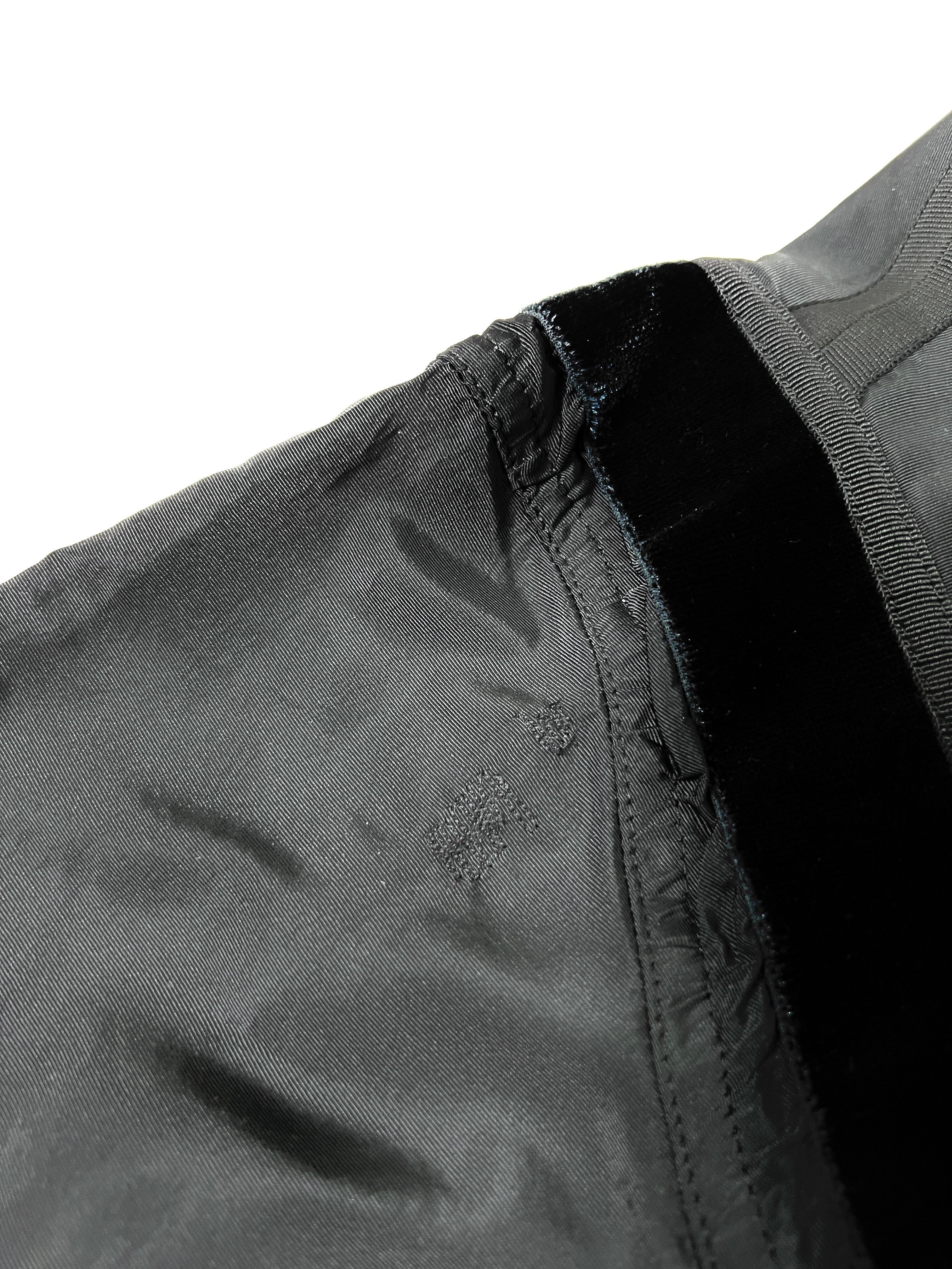 裏地のビッグロゴ刺繍、黒を基調としたとても雰囲気のある逸品です。