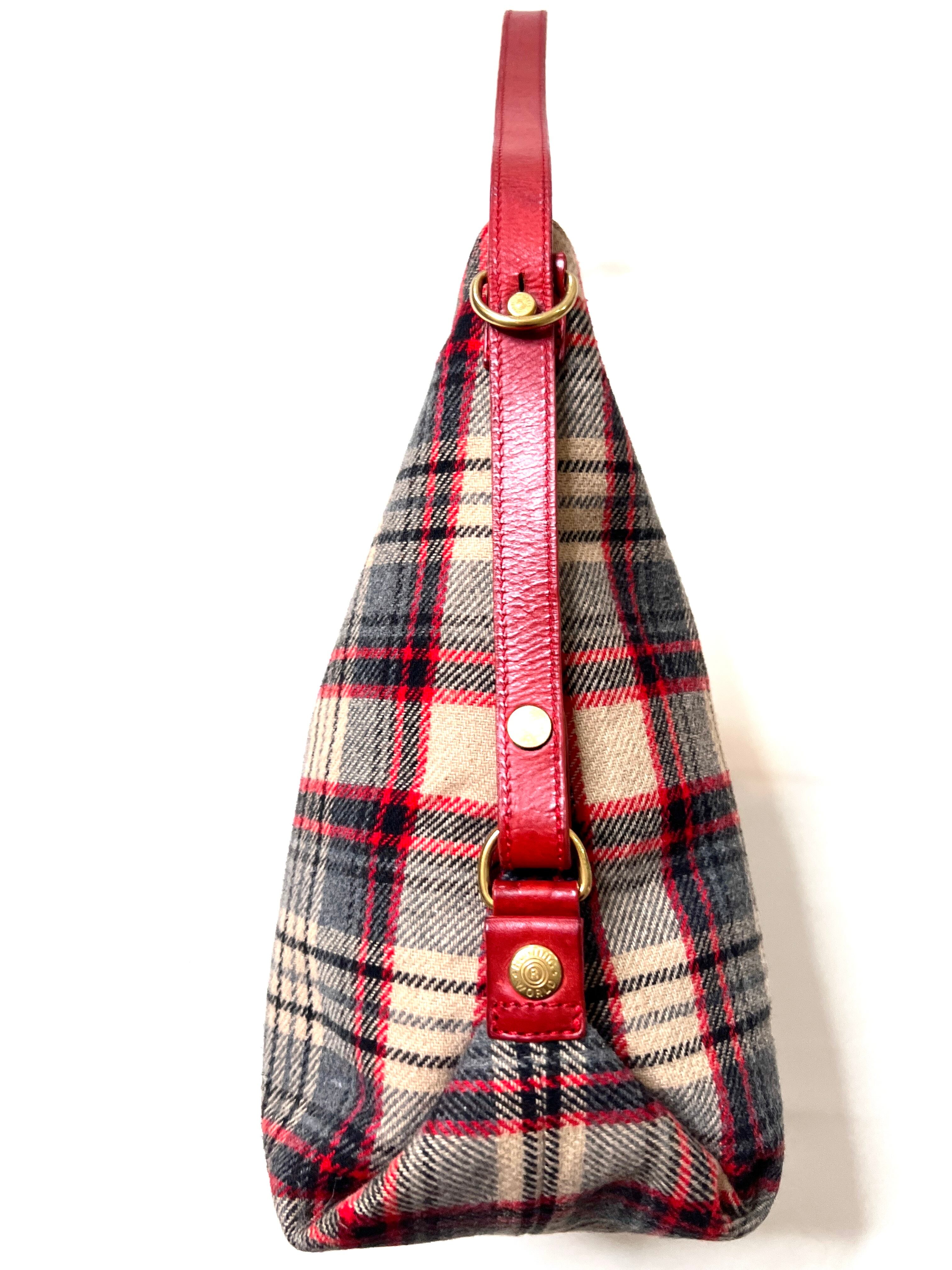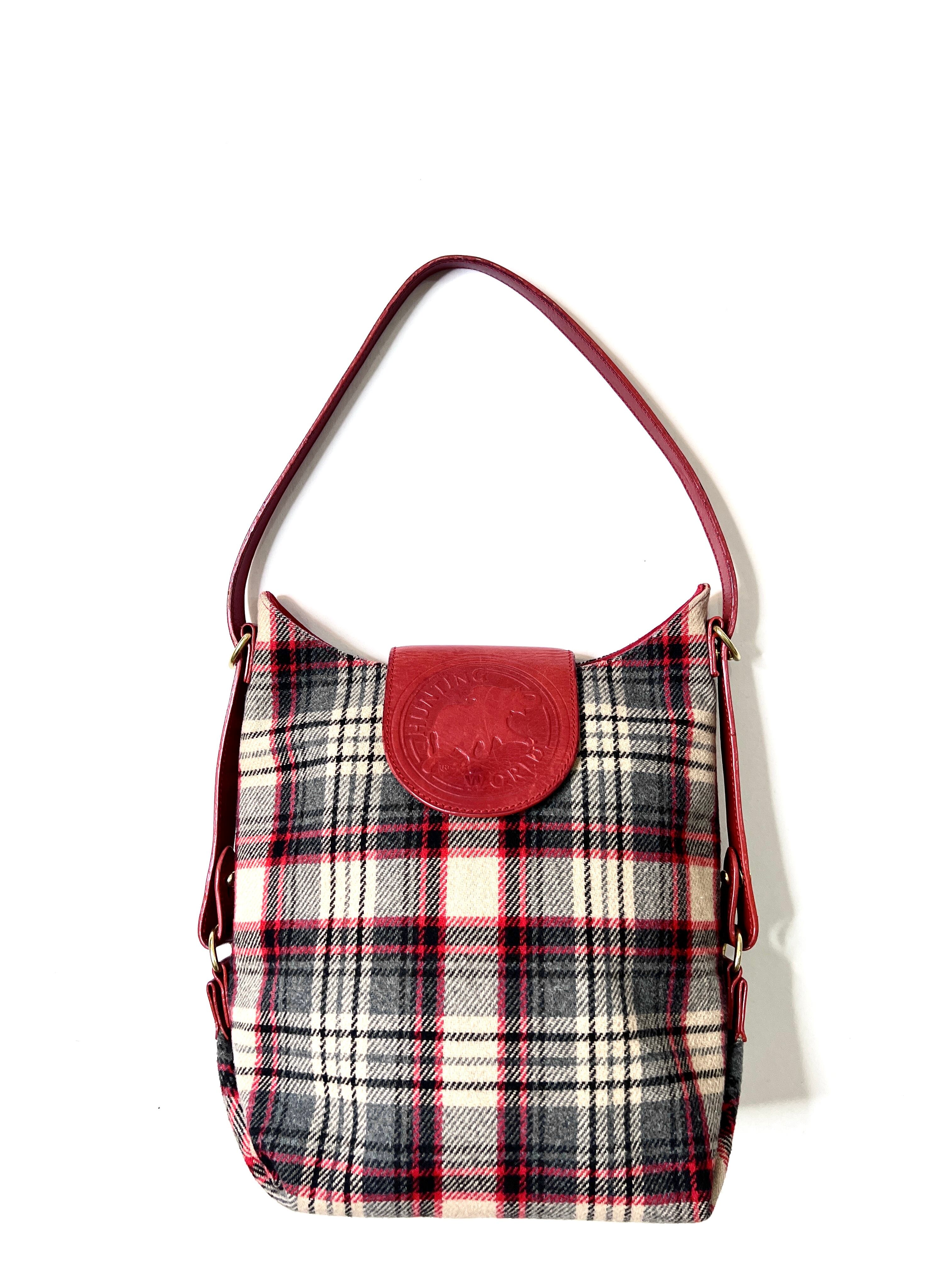 1990's HUNTING WORLD CHECK PATTERNED WOOL LEATHER FLAP SEMI SHOULDER BAG