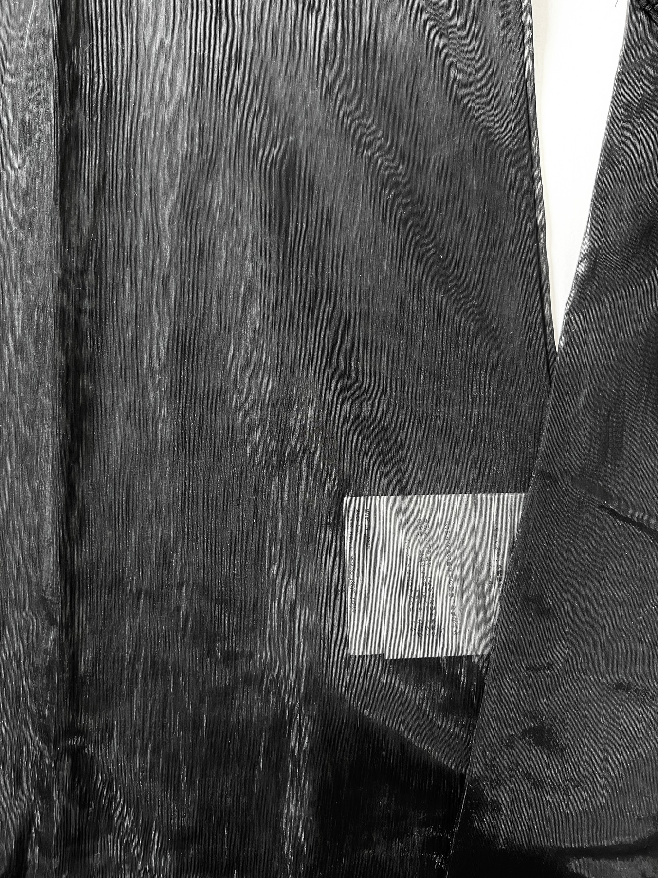 過度なドロップショルダーでアンバランスなフォルム、ダークでゴスな世界観に仕上がっています。