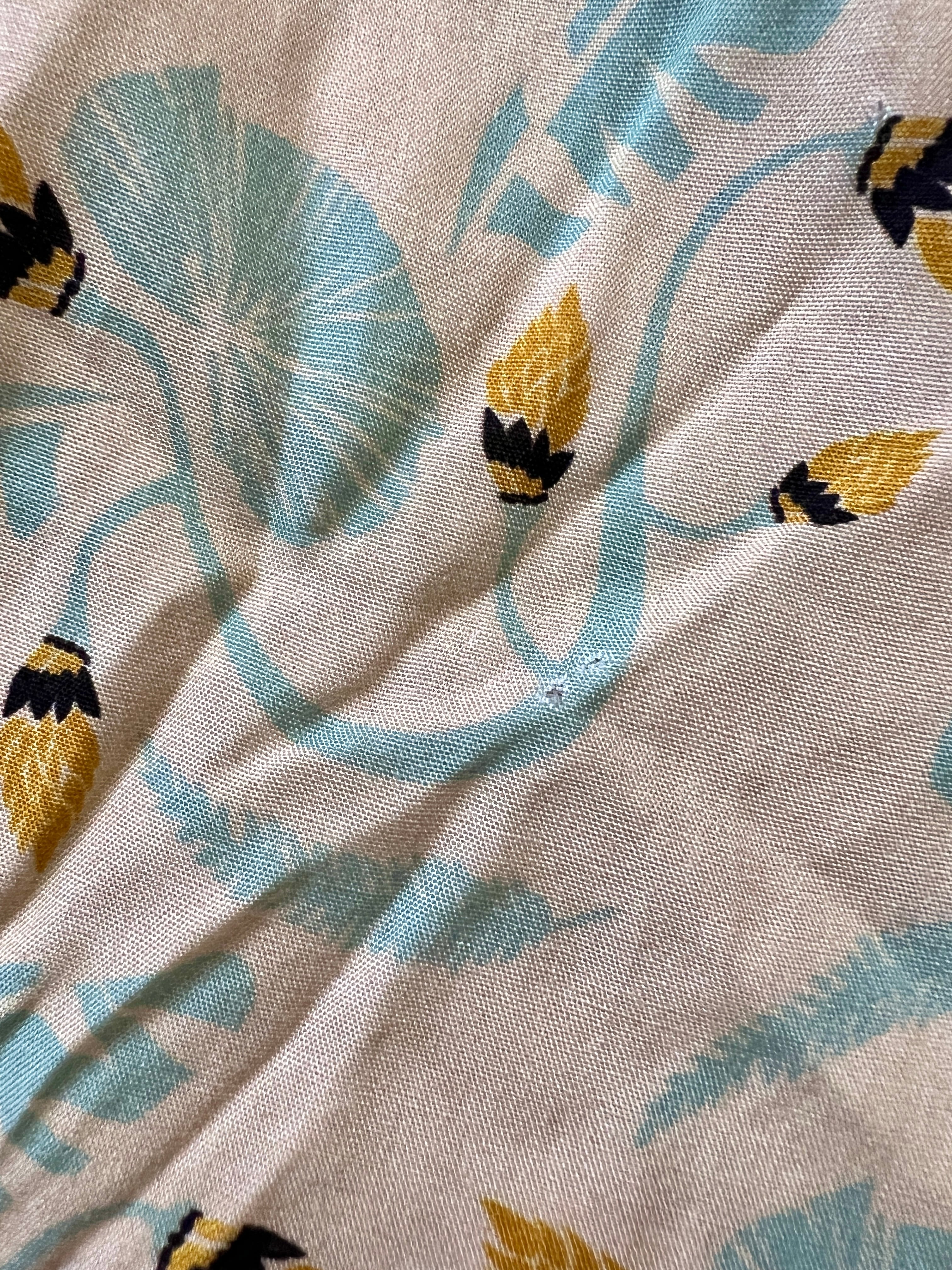 ペールトーンのトロピカル柄に少し大きめのサイズ感が良い雰囲気です。