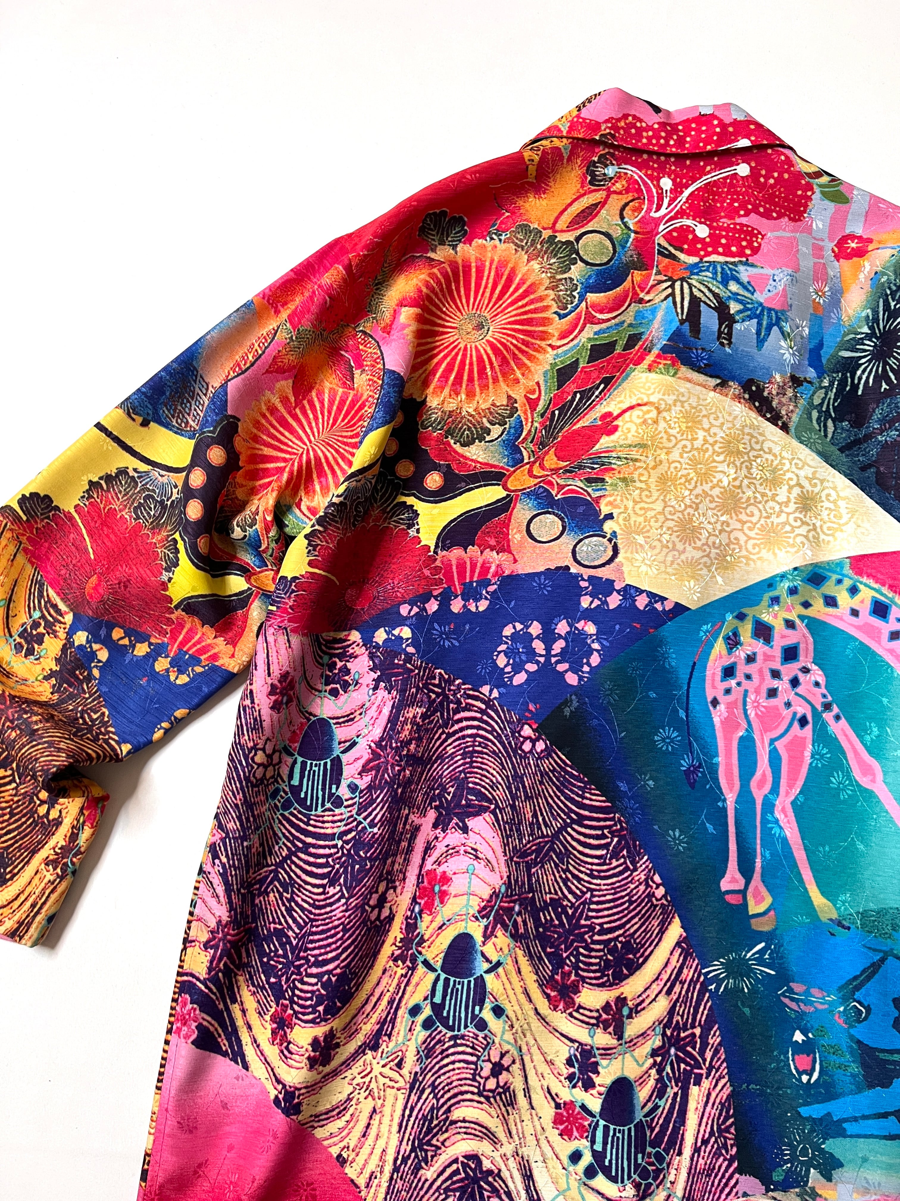 山本寛斎、独特の和柄を鮮やかな転写プリントで表現した薄手のジャケットです。