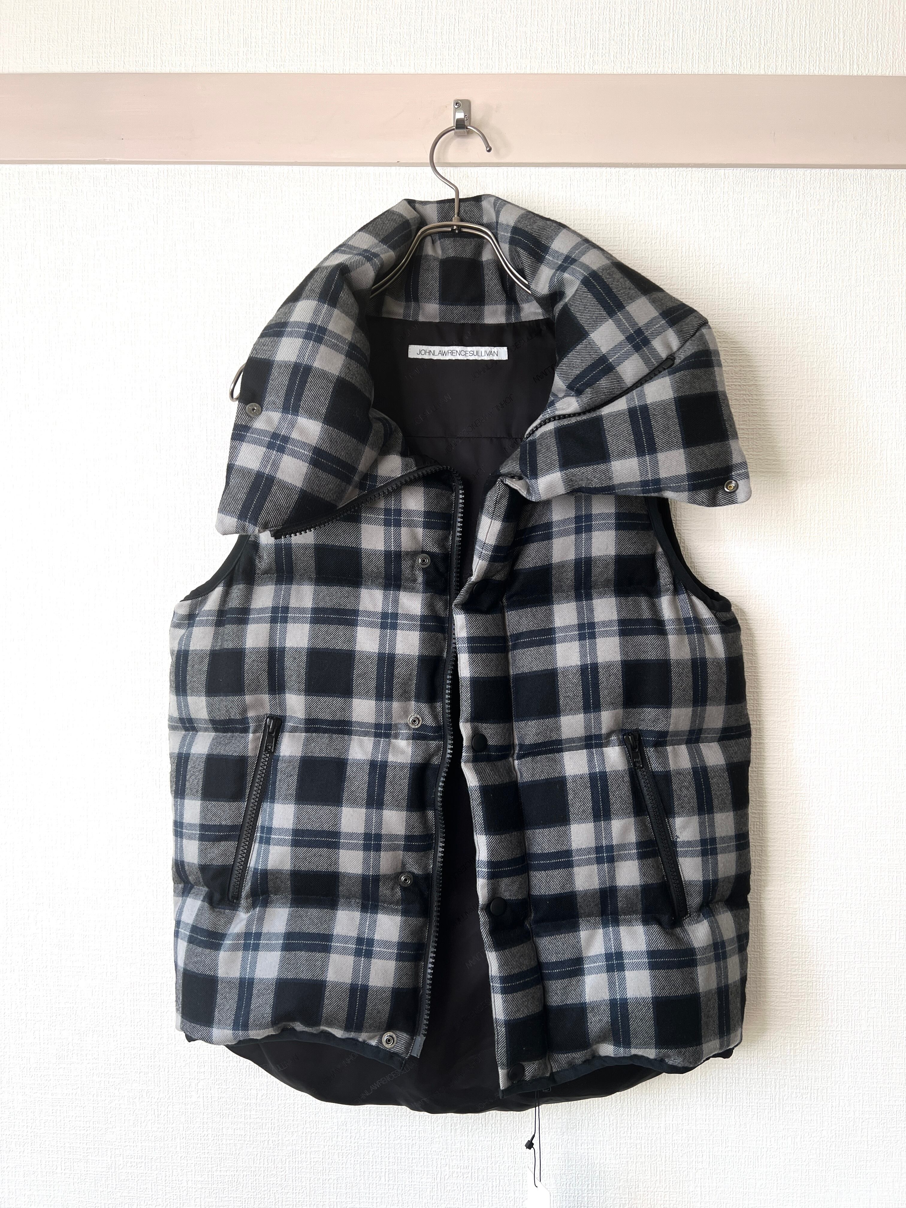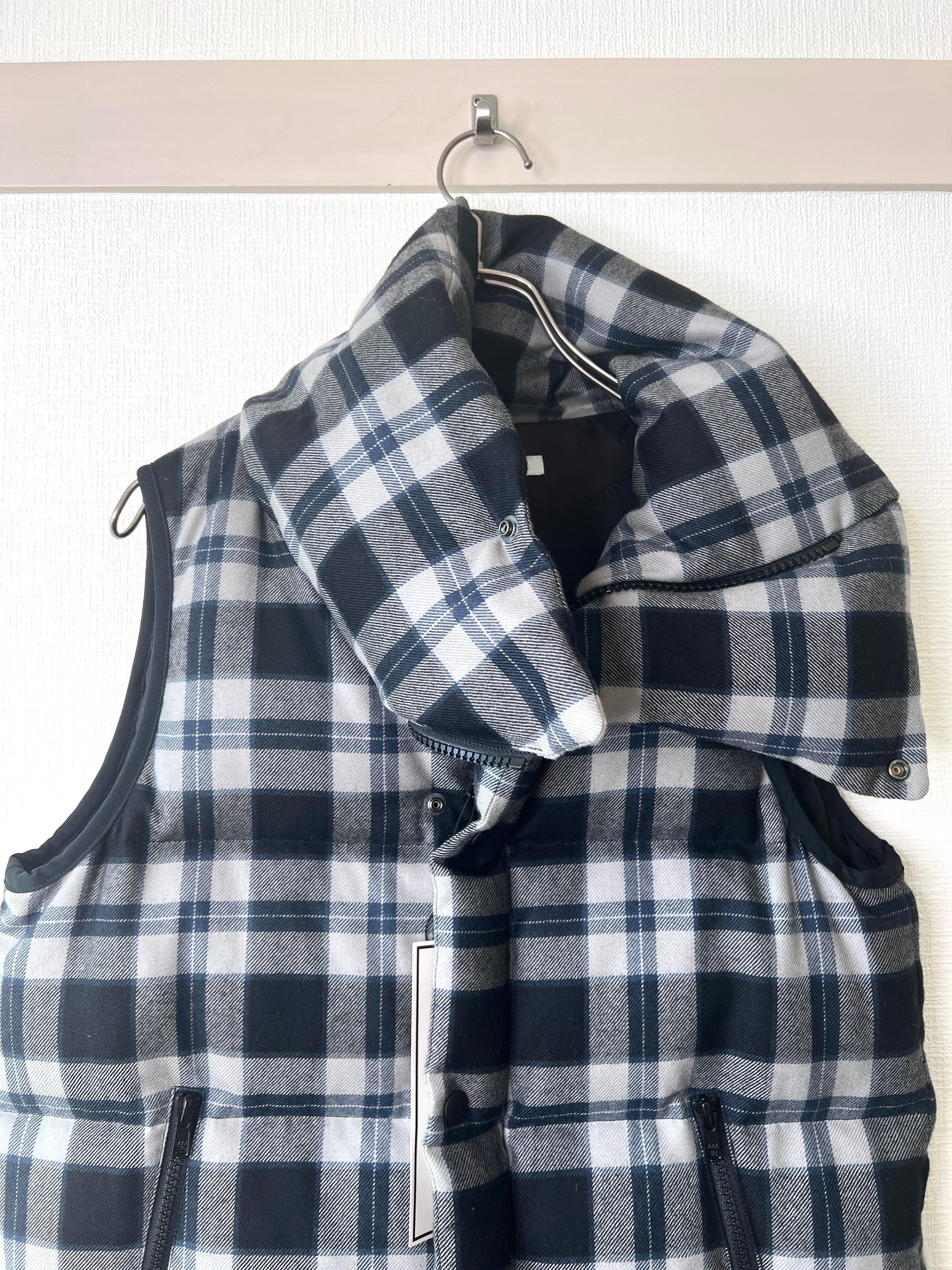 カシミヤブレンドの上質なウールのオリジナルチェックパターンのダウンベスト