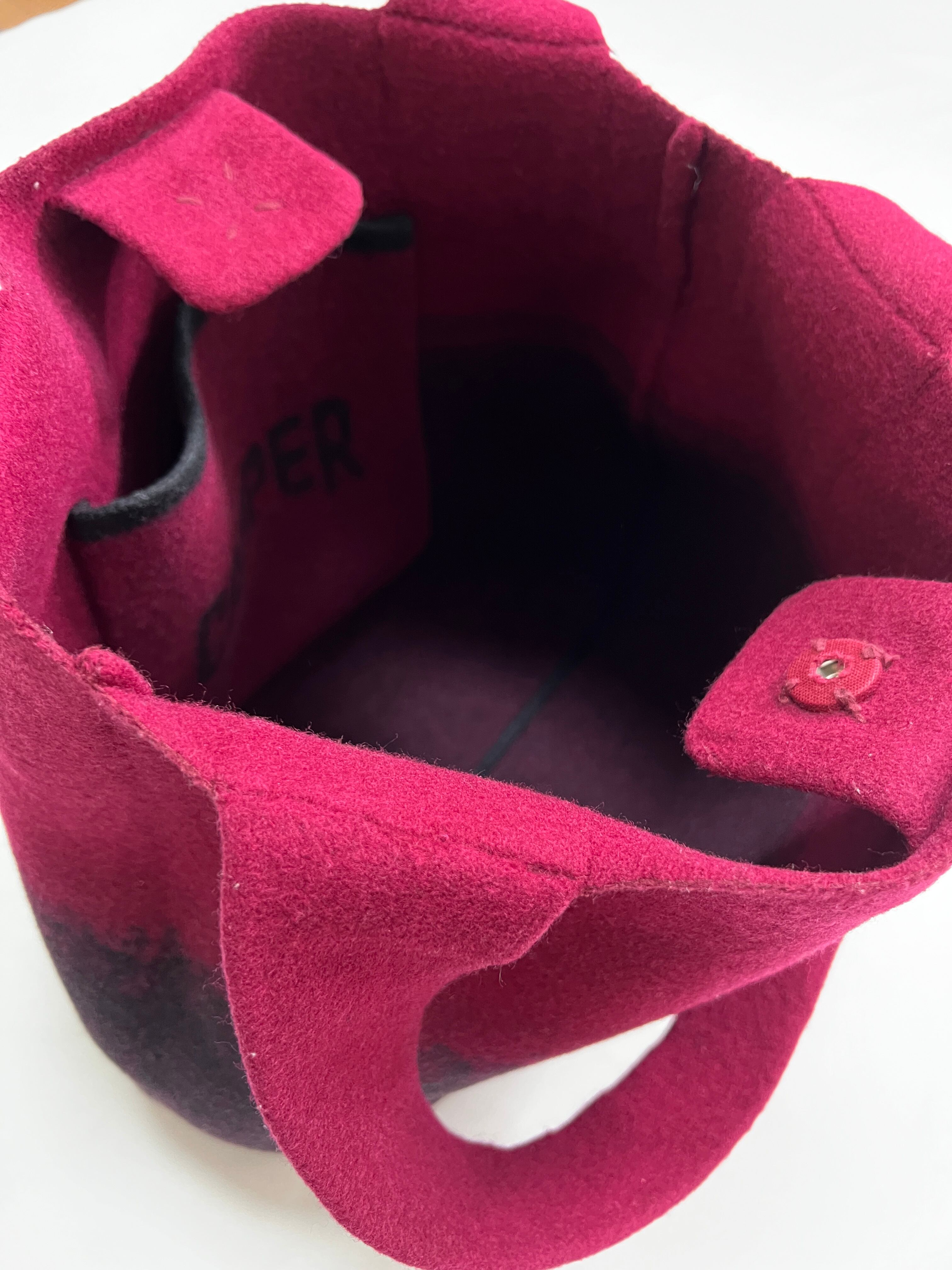 ウールニットを編み上げ、縮絨加工を施しフェルト生地に仕上げた、こだわりのアイテムです。
