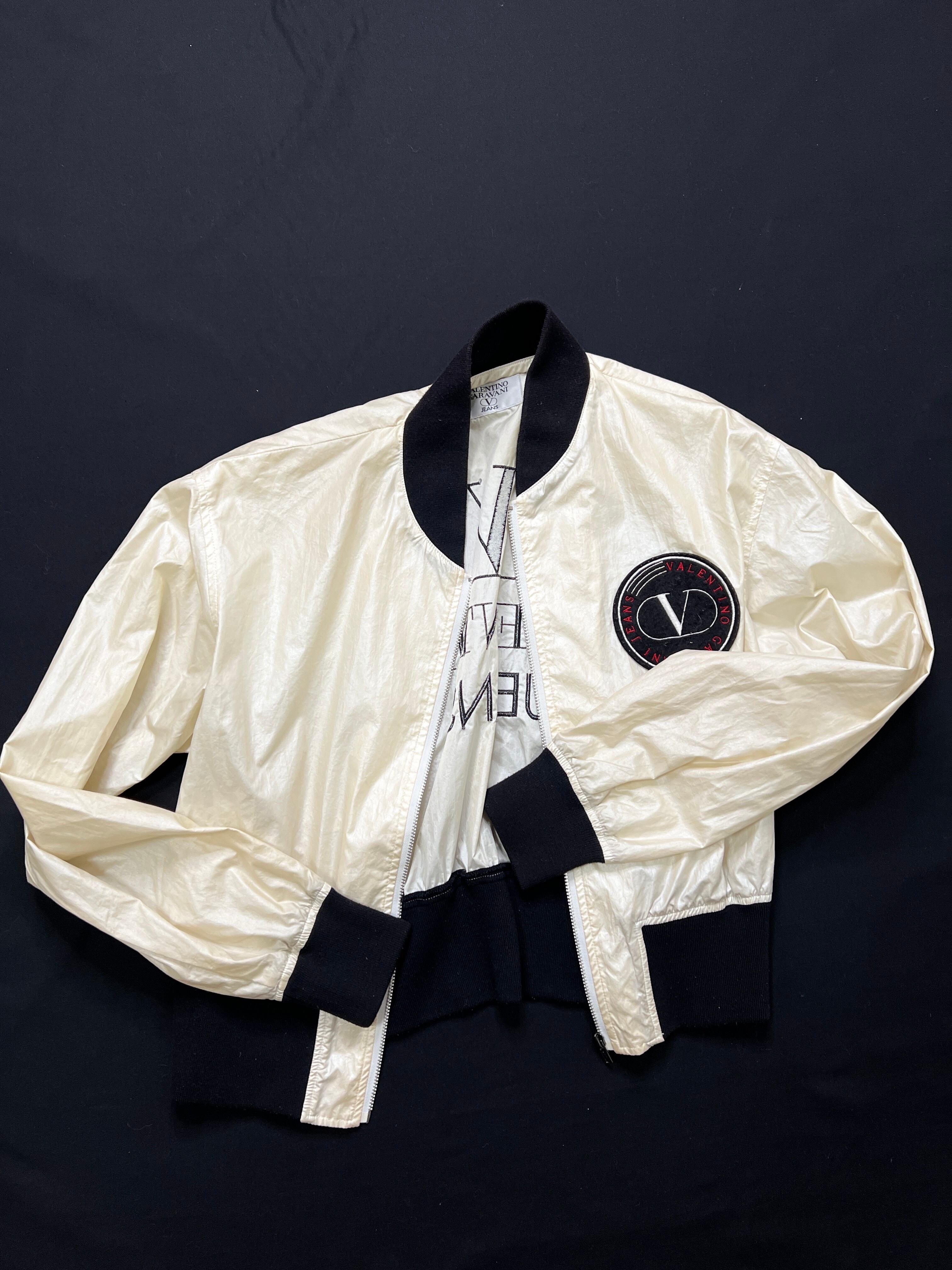 ボックスのクロップド丈、襟とカフスはリブ仕様と90年代ムードを色濃く感じるアイテムです。