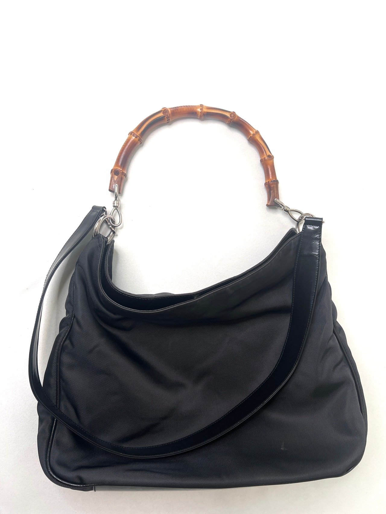 表面は手触りの良いきめ細かなナイロンツイル、スムースレザーの底面とパイピング。