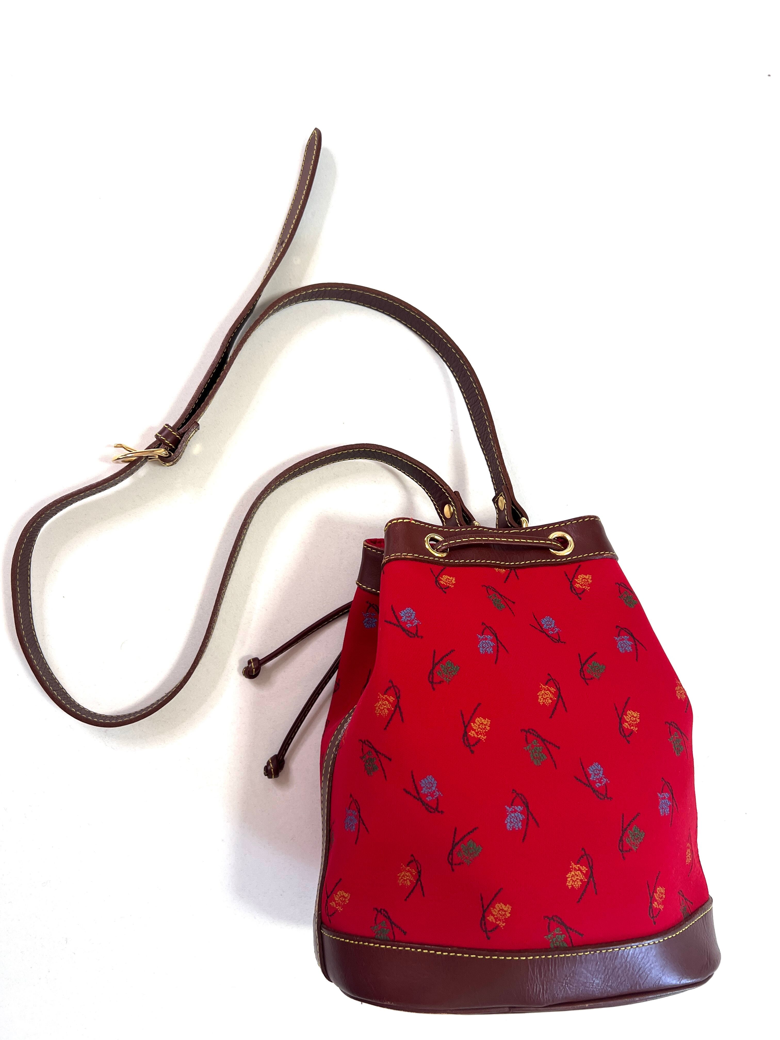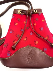 レザーとキャンバスのドローストリングス・ショルダーバッグです。