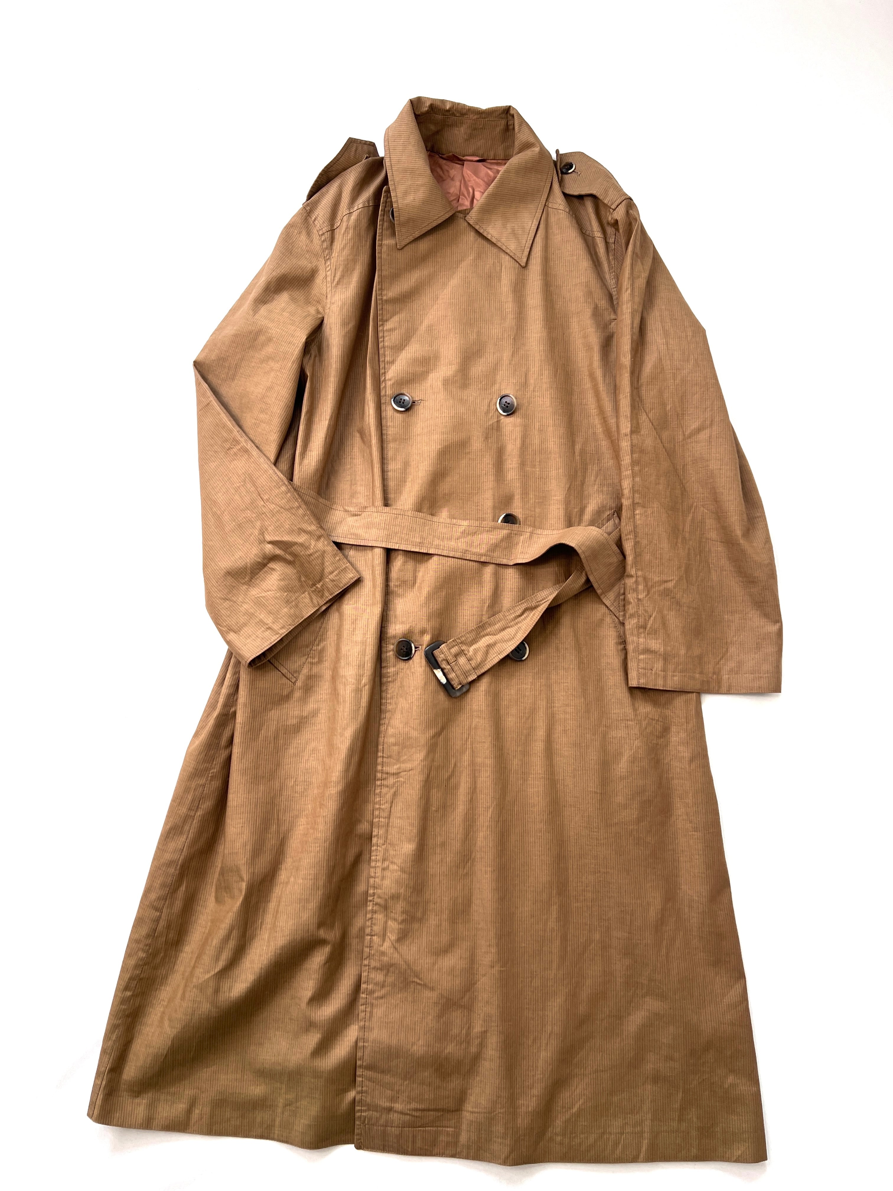 落ち感のある薄手のコットンを使用した丁寧な作りです。表面に撥水コーティングのかかった微光沢な質感、細いストライプでクラシックな逸品です。