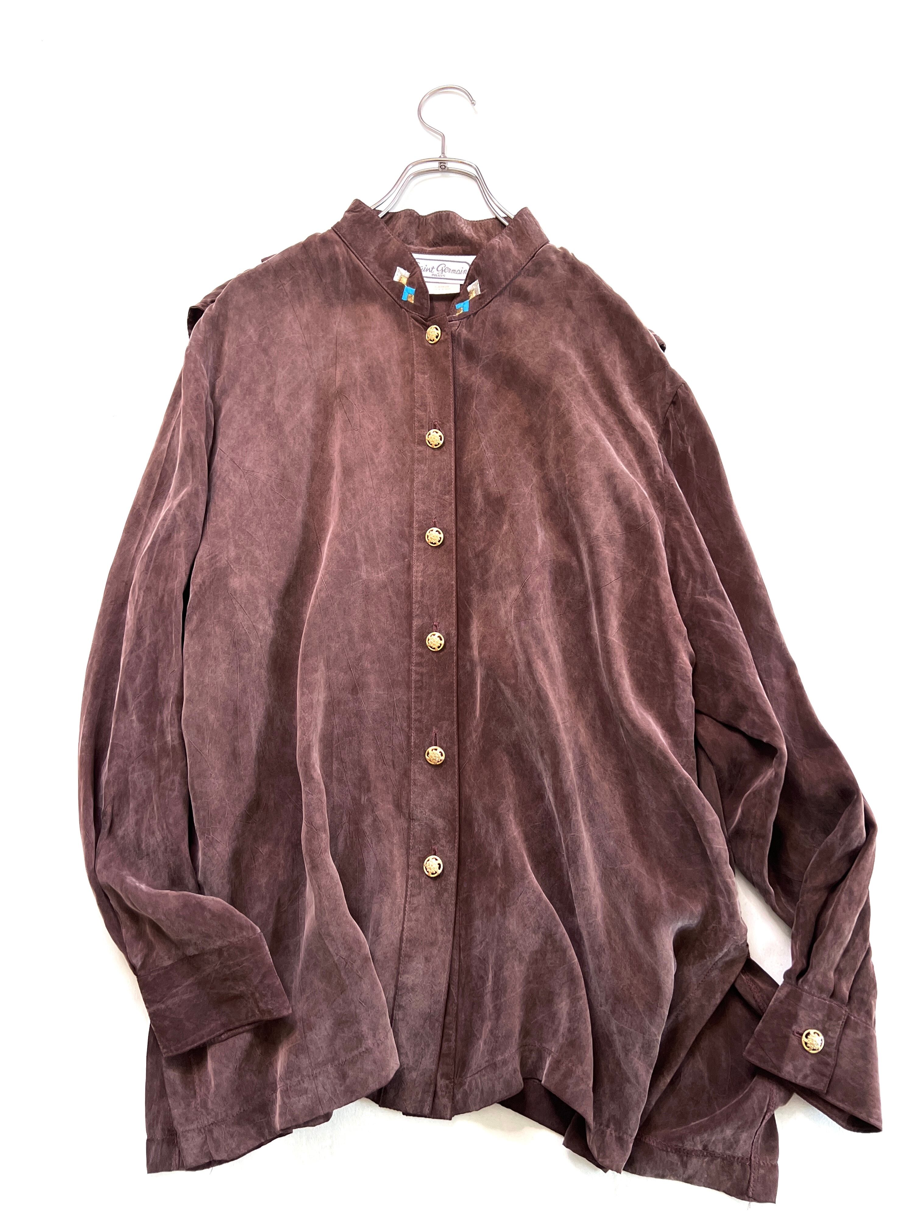 刺繍を施したとろみの素材のベストレイヤードシャツ。民族調ムード漂う雰囲気のある1着。