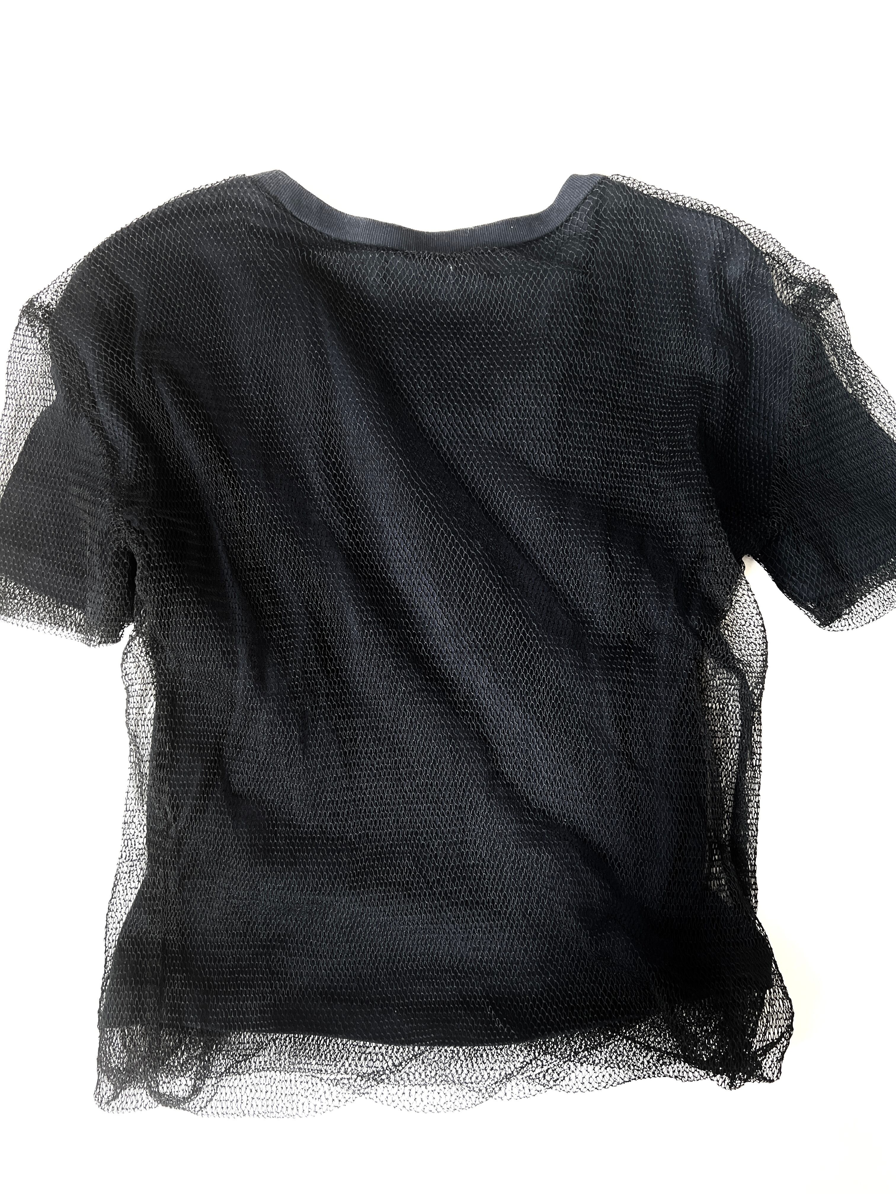 伸縮性のあるコットンのリブTシャツにメッシュをレイヤードしたトップス!