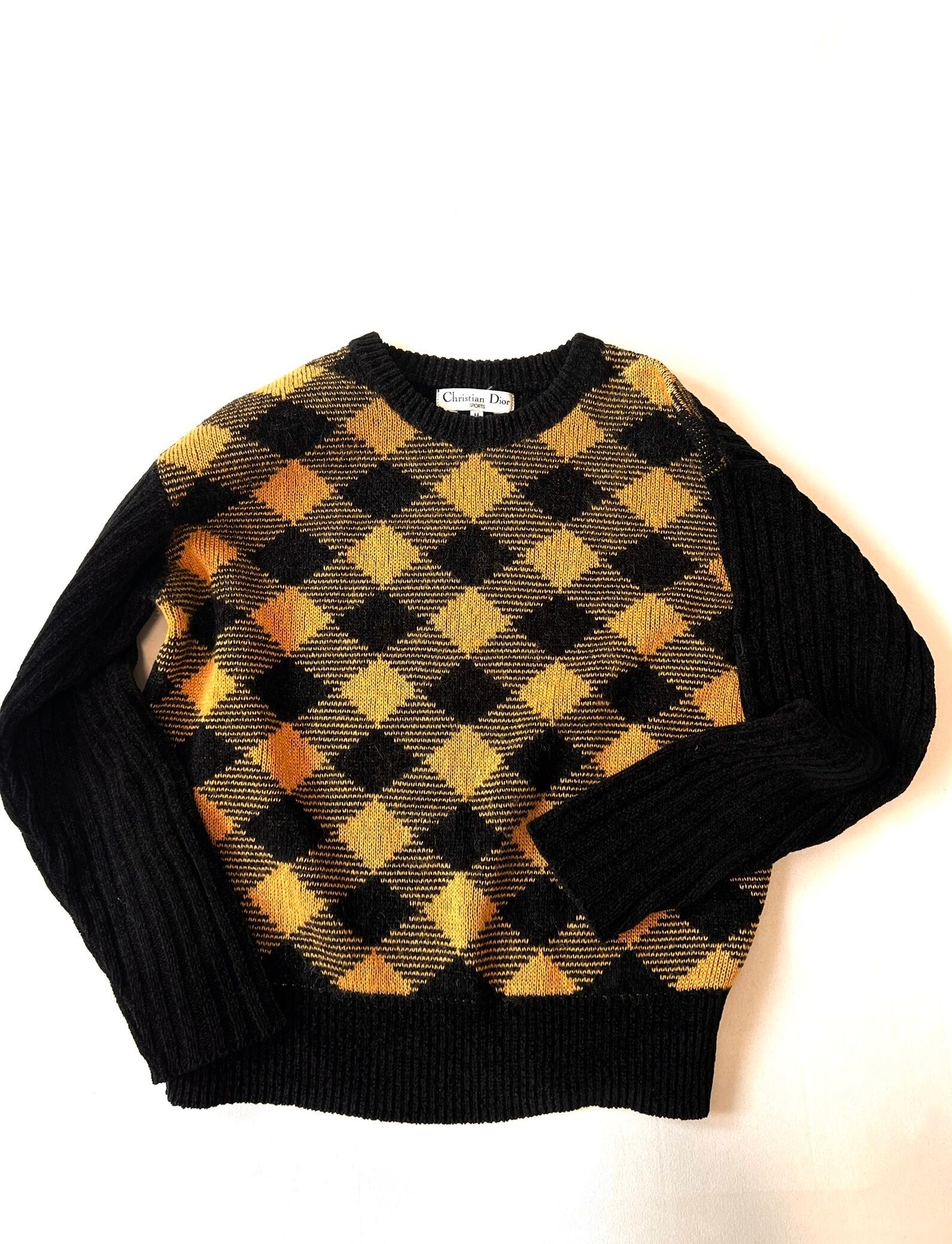 イエロー&ブラックのダイヤ型のブロックチェックが綺麗なヴィンテージ・ディオールのニット。