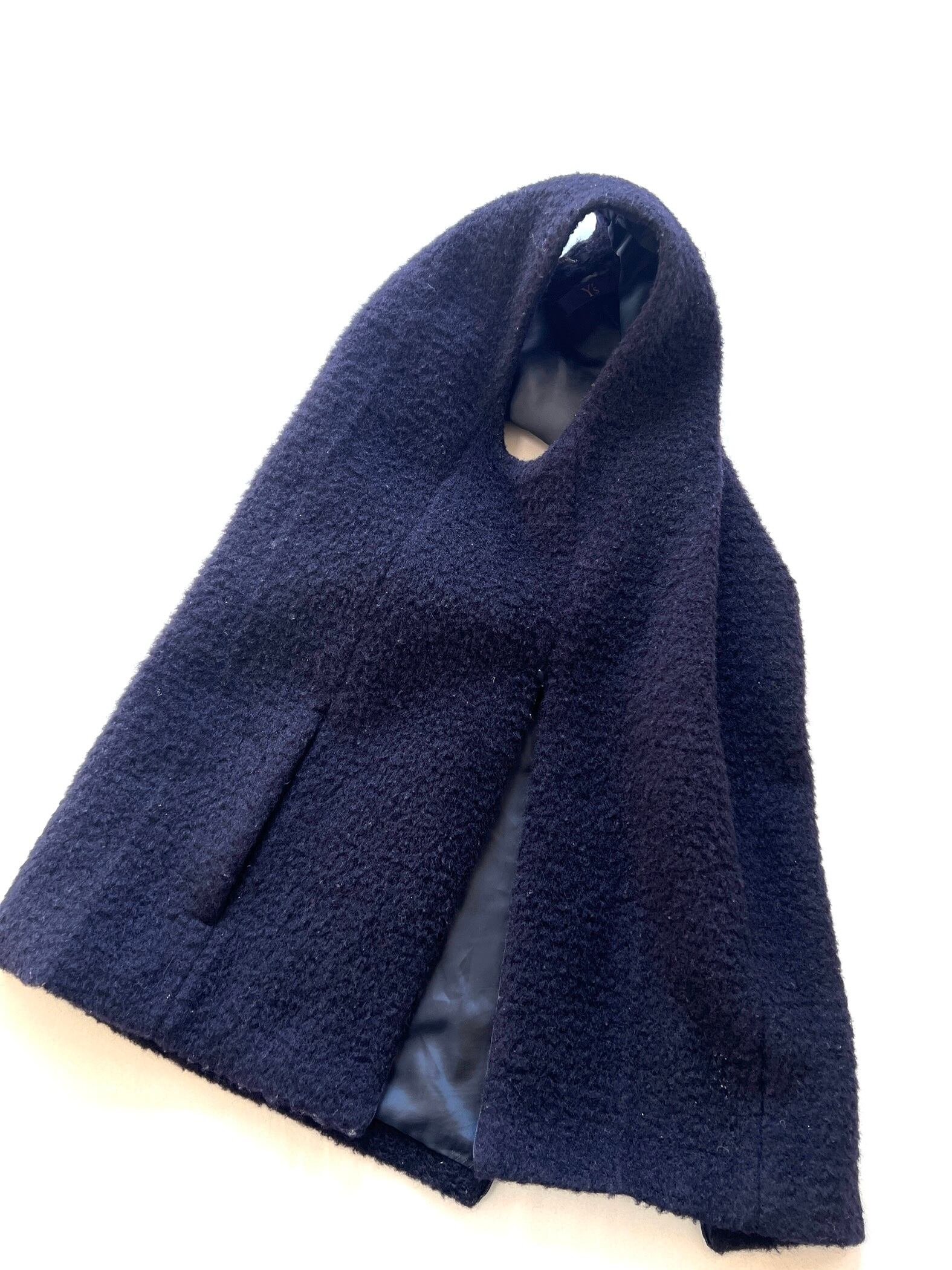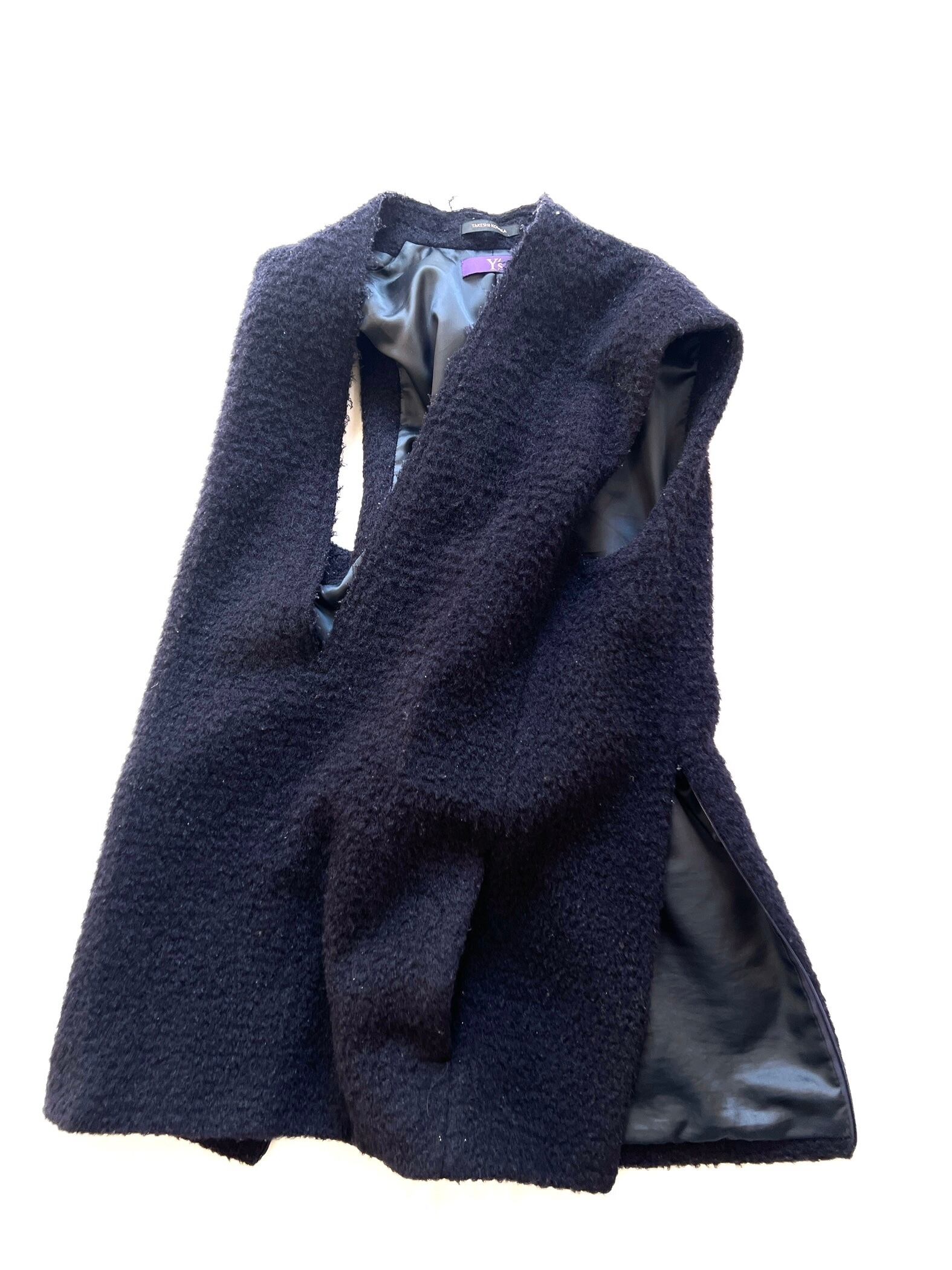 オーバーサイズに深く切り込まれた胸元、着脱を容易にするだけでなくバックのファスナー式のサイドベンツを配置しフレアシルエットも演出。