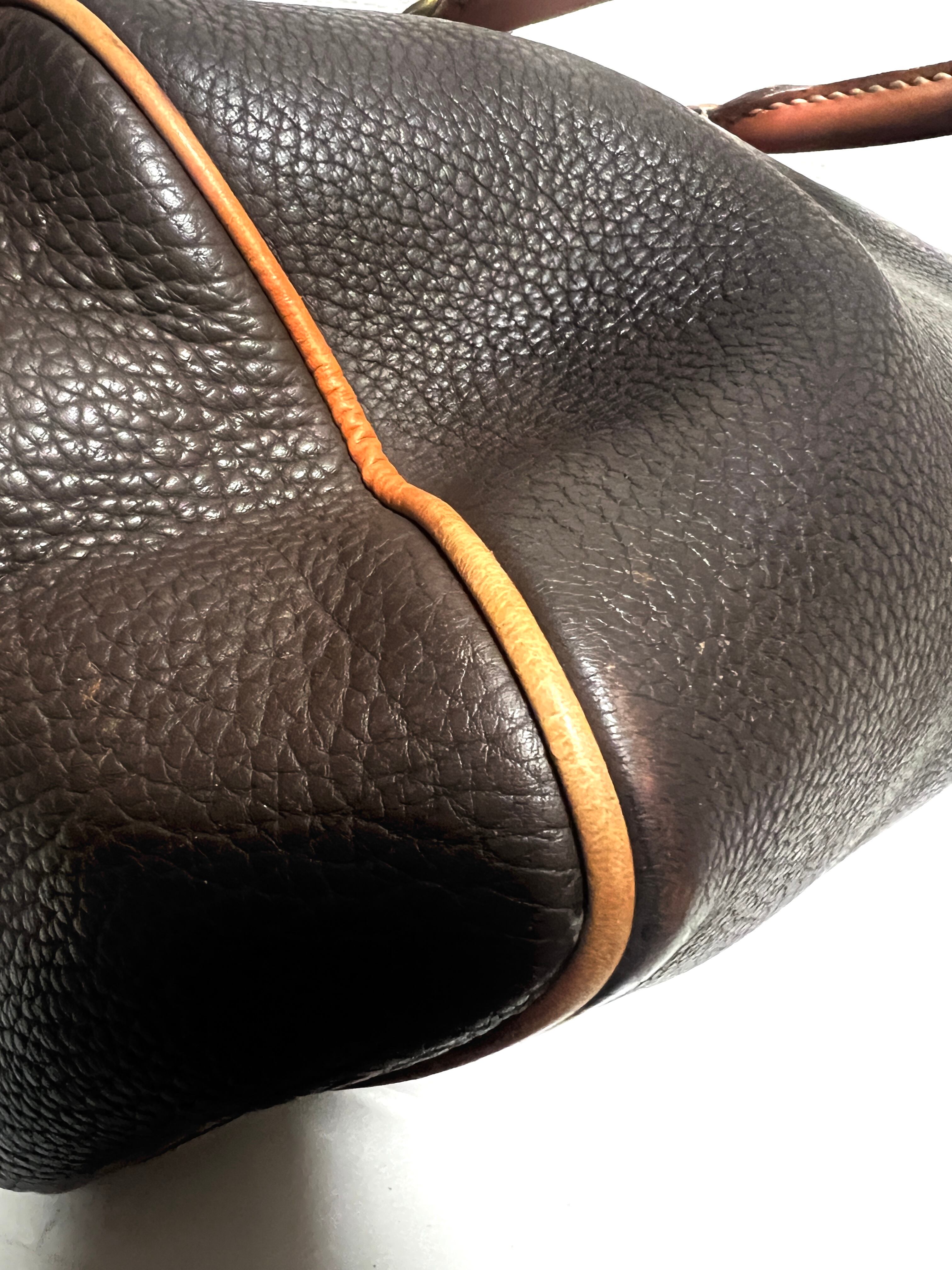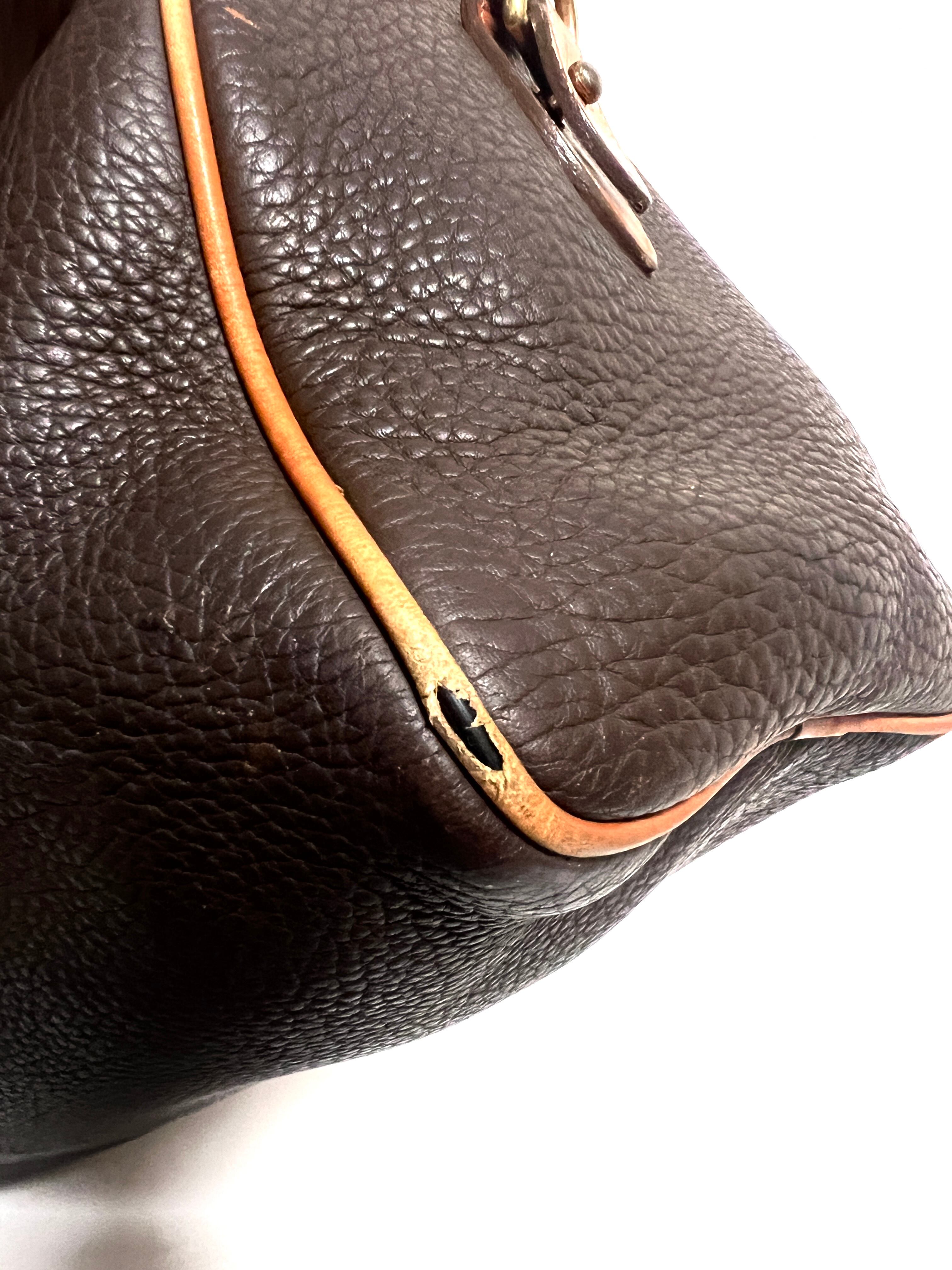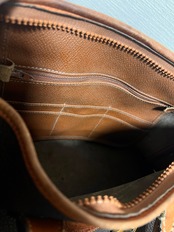 ダークブラウンの珍しい色合いと使い込まれたレザーの風合いがとても魅力的で使用感はありますが雰囲気のある逸品です。